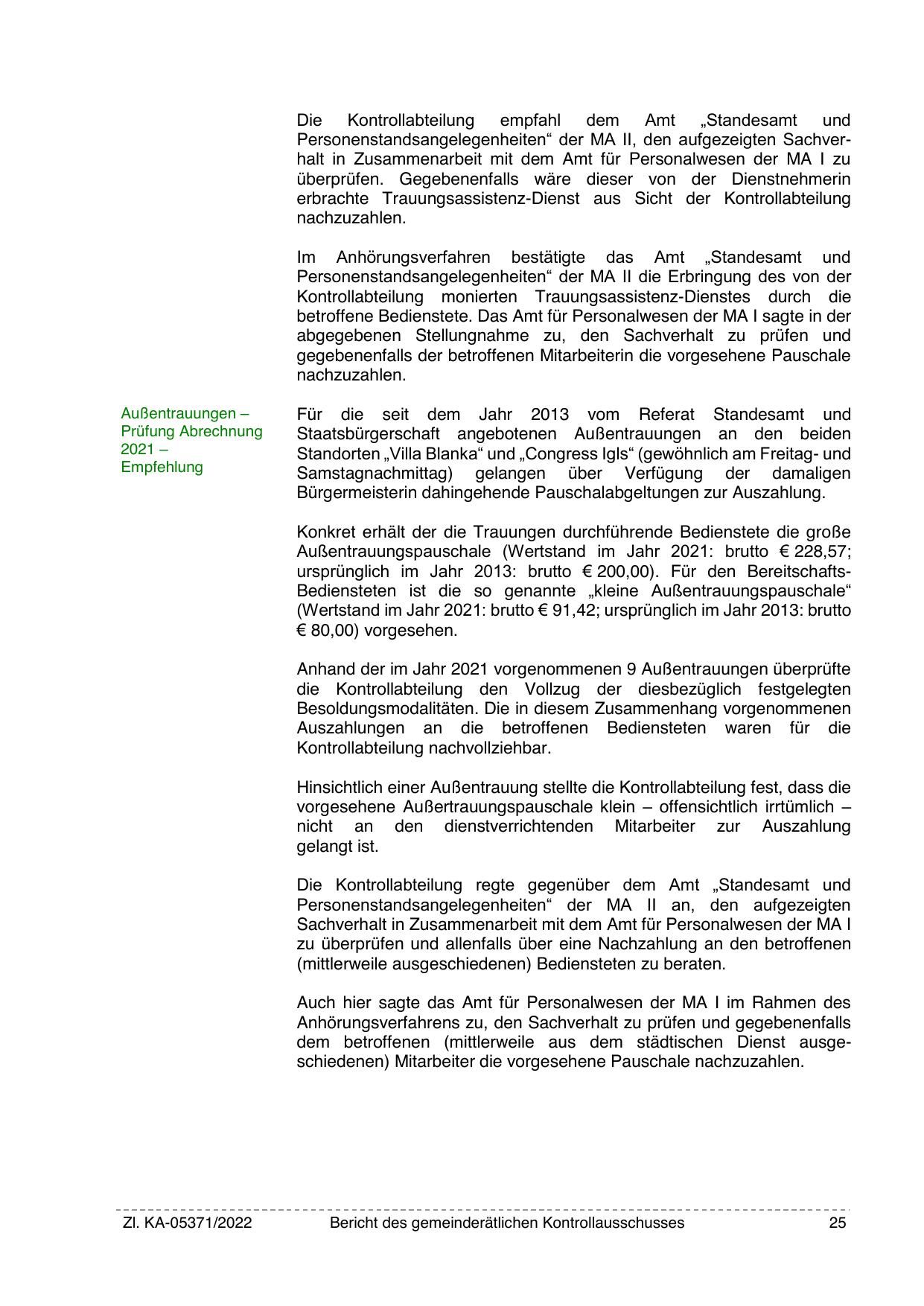 Personenstandsangelegenheiten“ der MA II, den aufgezeigten Sachverhalt in Zusammenarbeit mit dem Amt für Personalwesen der MA I zu