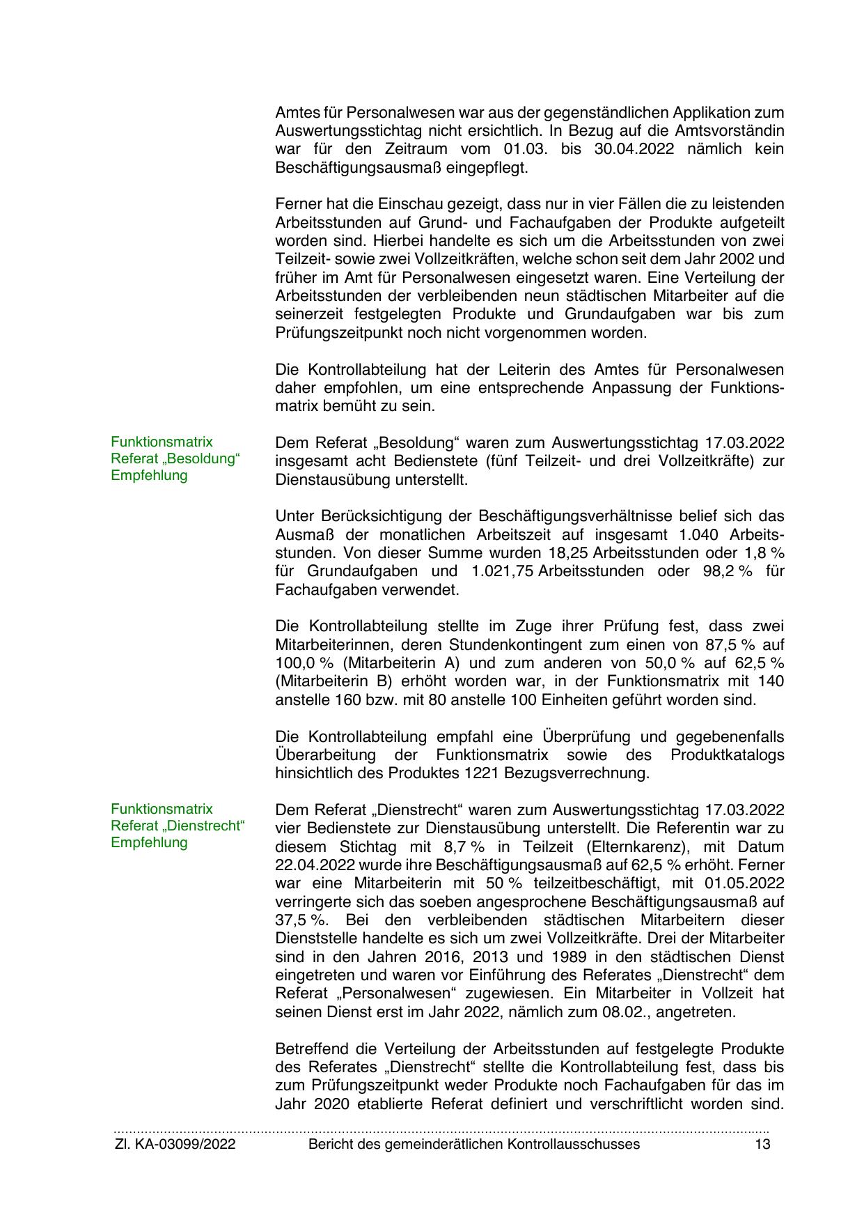 des Referates „Dienstrecht“ stellte die Kontrollabteilung fest, dass bis