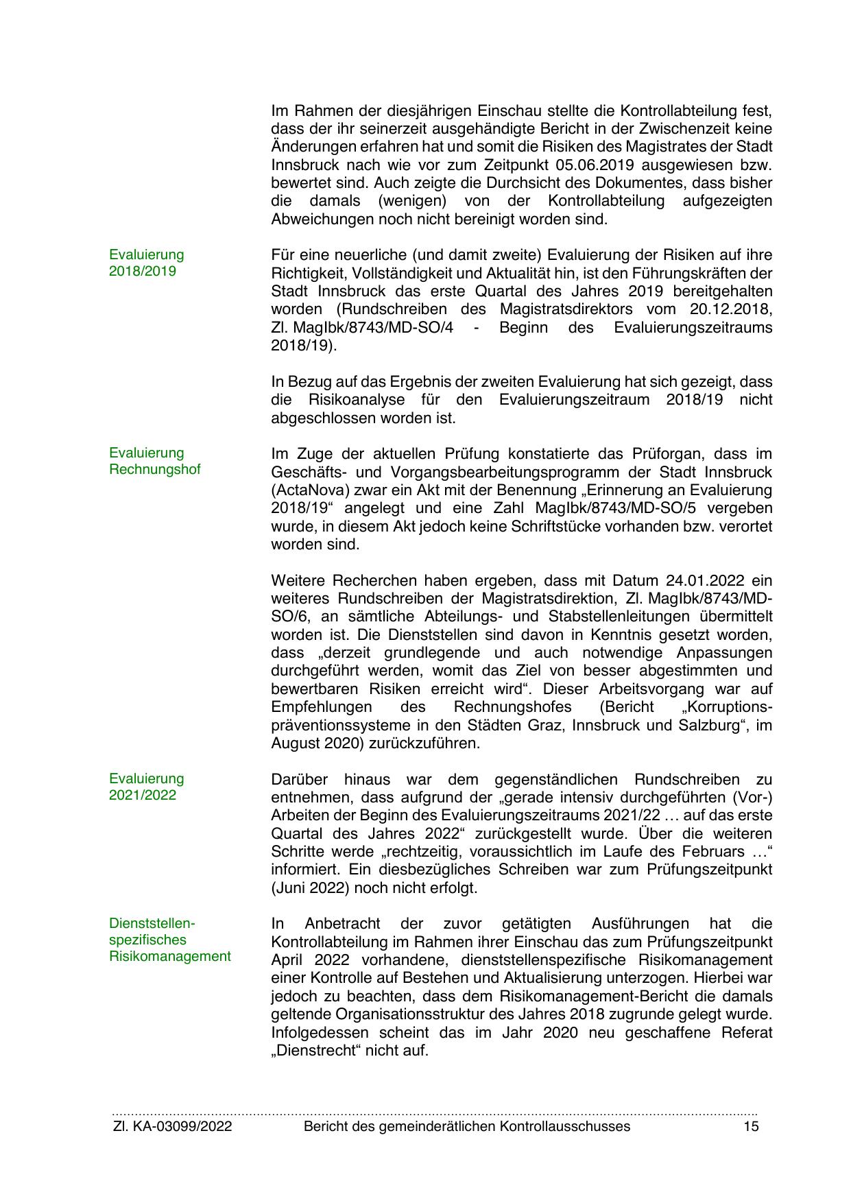 Zl. MagIbk/8743/MD-SO/4 - Beginn des Evaluierungszeitraums