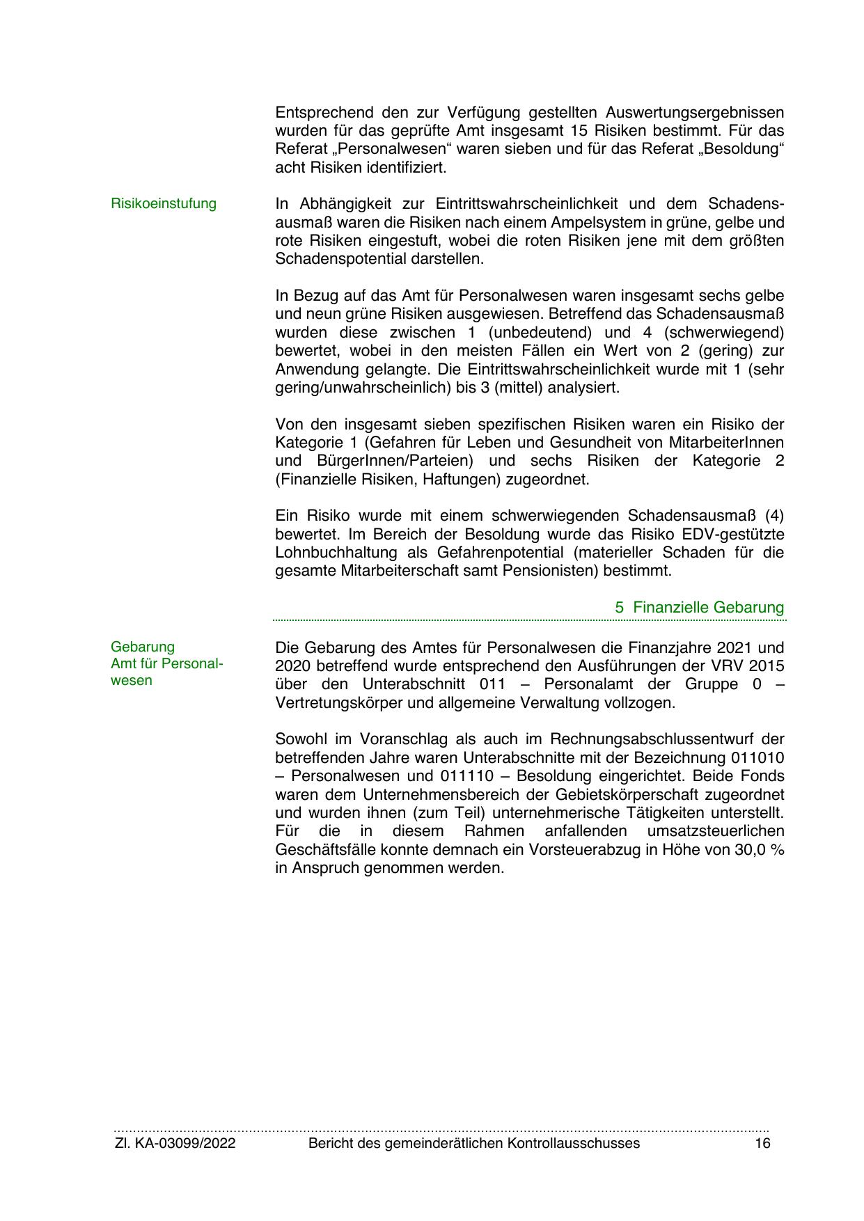 bewertet. Im Bereich der Besoldung wurde das Risiko EDV-gestützte