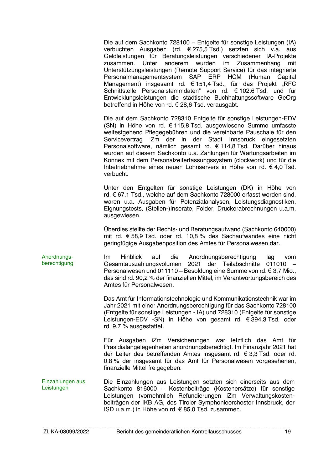 Leistungen (vornehmlich Refundierungen iZm Verwaltungskostenbeiträgen der IKB AG, des Tiroler Symphonieorchester Innsbruck, der