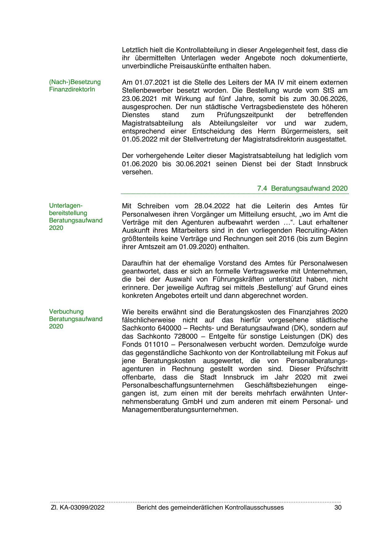 jene Beratungskosten ausgewertet, die von Personalberatungsagenturen in Rechnung gestellt worden sind. Dieser Prüfschritt