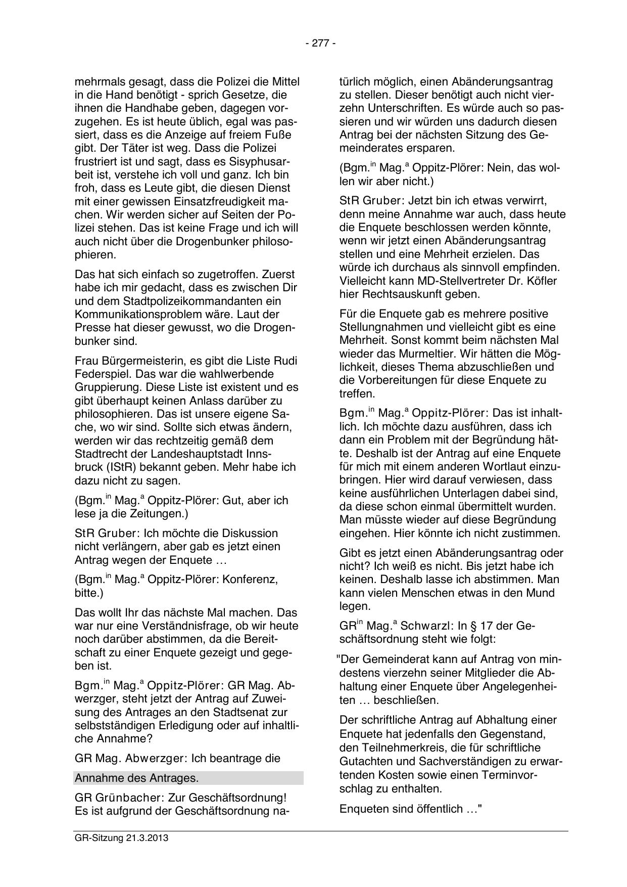 Es ist aufgrund der Geschäftsordnung naGR-Sitzung 21.3.2013