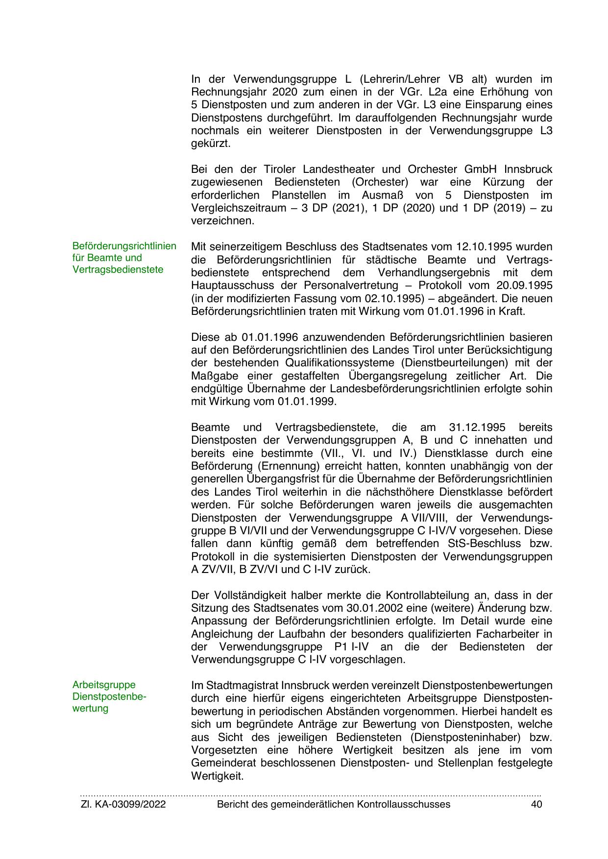 Im Stadtmagistrat Innsbruck werden vereinzelt Dienstpostenbewertungen