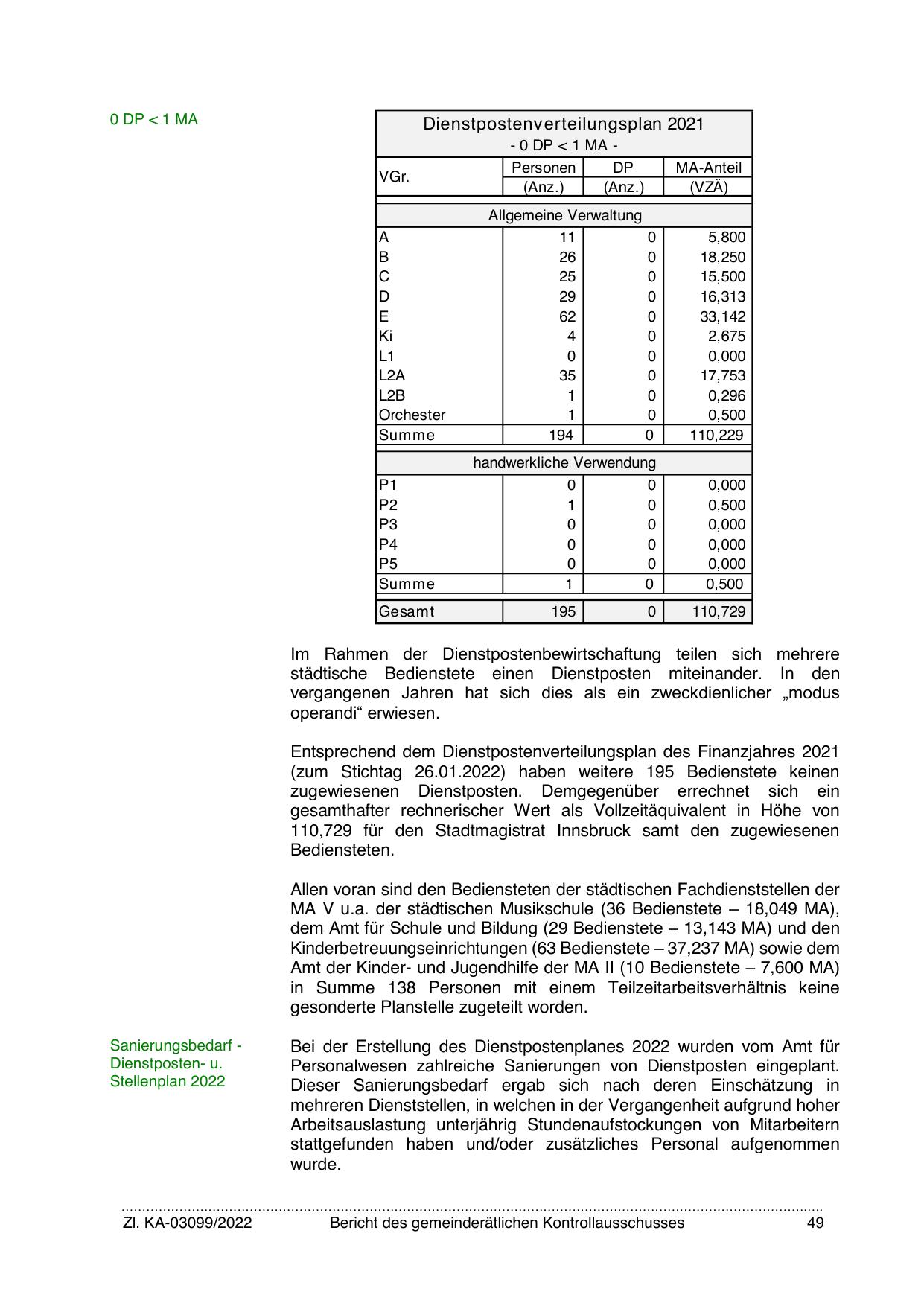 Bei der Erstellung des Dienstpostenplanes 2022 wurden vom Amt für