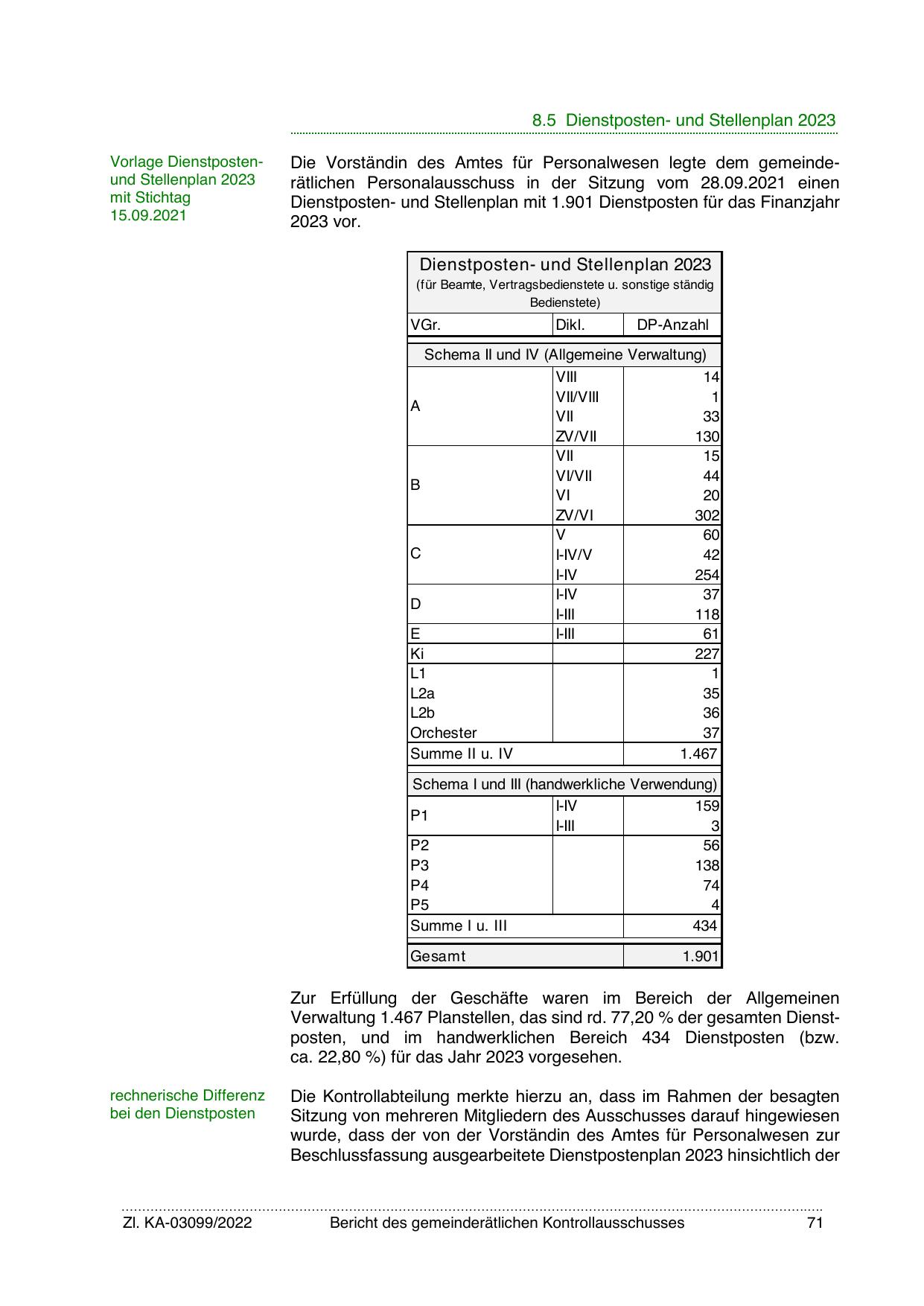 Beschlussfassung ausgearbeitete Dienstpostenplan 2023 hinsichtlich der