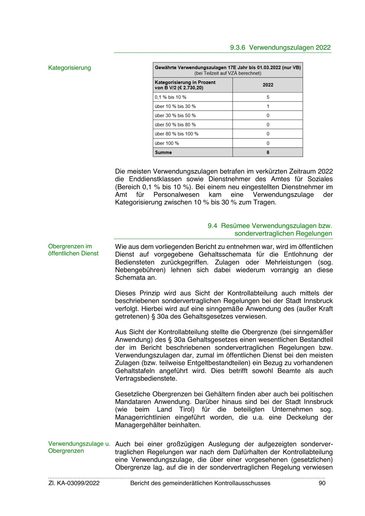 beschriebenen sondervertraglichen Regelungen bei der Stadt Innsbruck