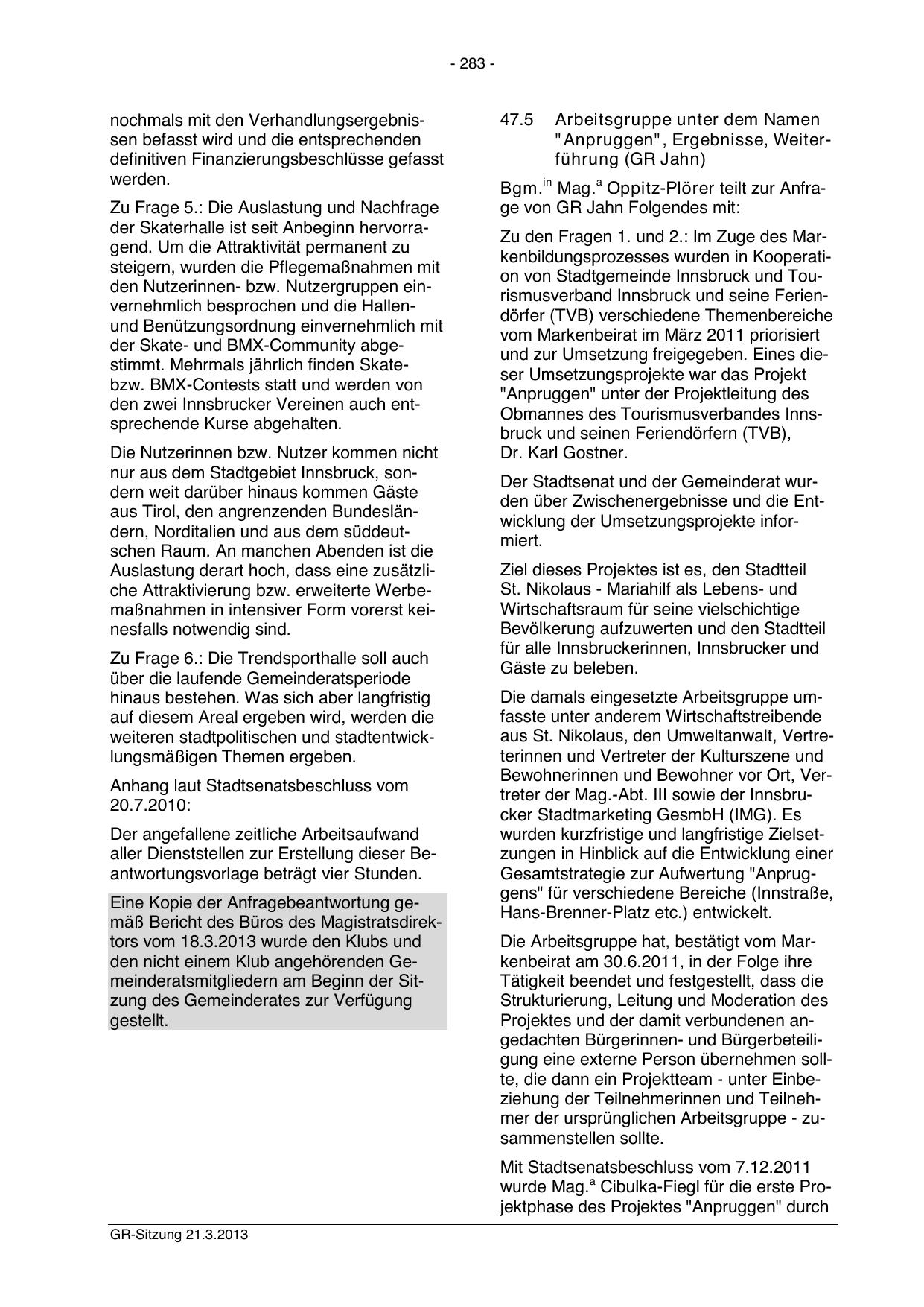 Bgm.in Mag.a Oppitz-Plörer teilt zur Anfrage von GR Jahn Folgendes mit: