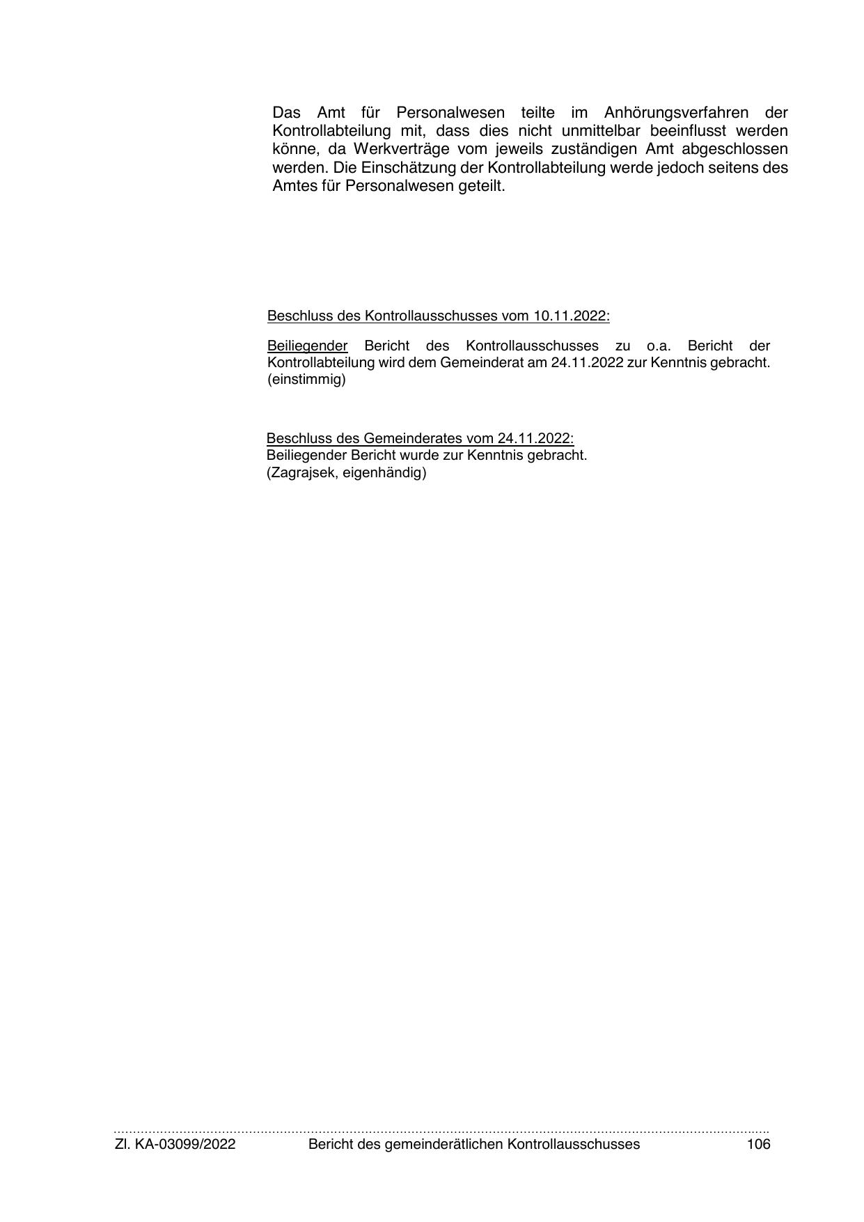 Kontrollabteilung wird dem Gemeinderat am 24.11.2022 zur Kenntnis gebracht.