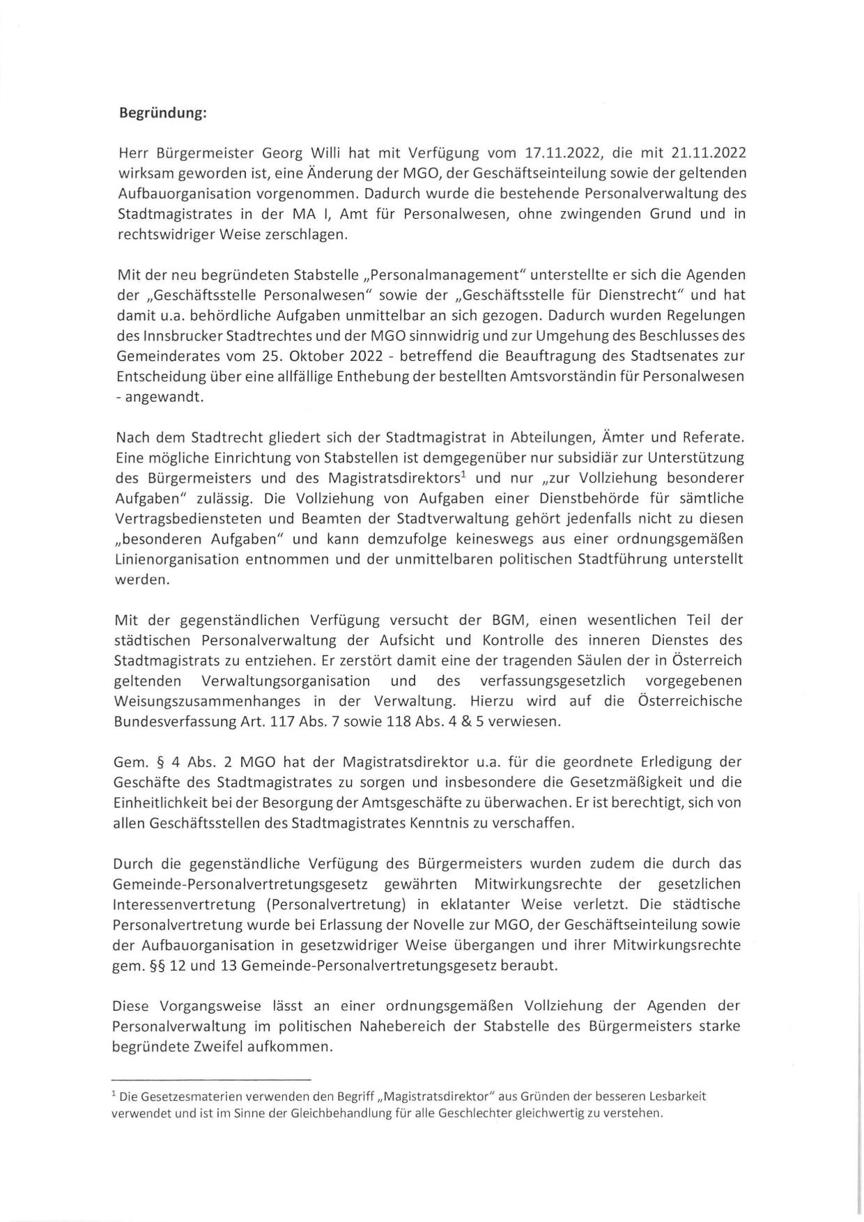 Herr Bürgermeister Georg Willi hat mit Ve rfügung vom 17.11.2022, die mit 21.11.2022