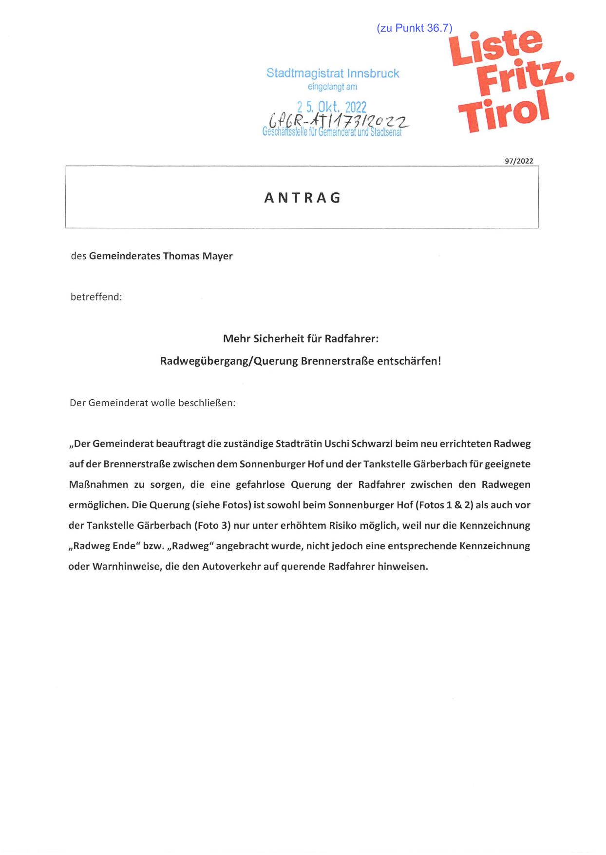 „Der Gemeinderat beauftragt die zuständige Stadträtin Uschi Schwarz! beim neu errichteten Radweg