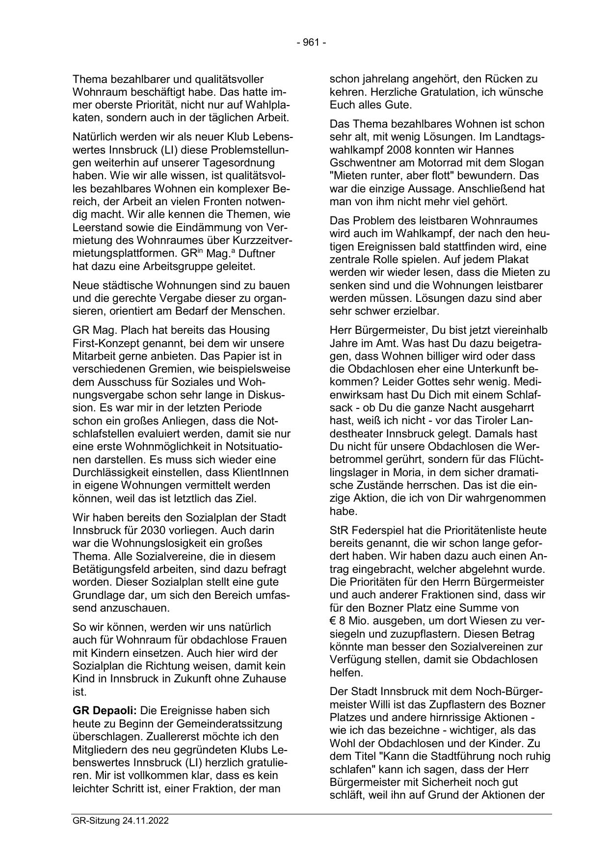 Natürlich werden wir als neuer Klub Lebenswertes Innsbruck (LI) diese Problemstellungen weiterhin auf unserer Tagesordnung