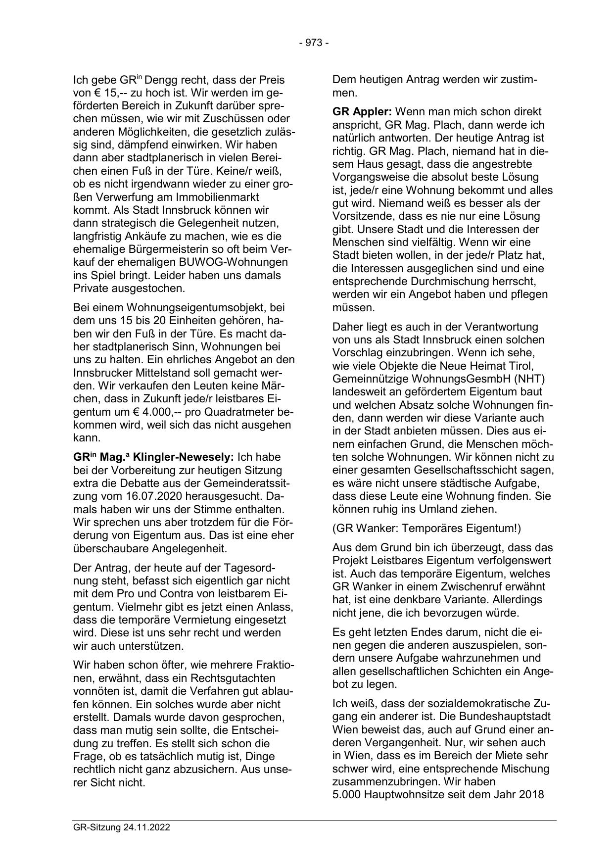 Innsbrucker Mittelstand soll gemacht werden. Wir verkaufen den Leuten keine Märchen, dass in Zukunft jede/r leistbares Eigentum um € 4.000,-- pro Quadratmeter bekommen wird, weil sich das nicht ausgehen
