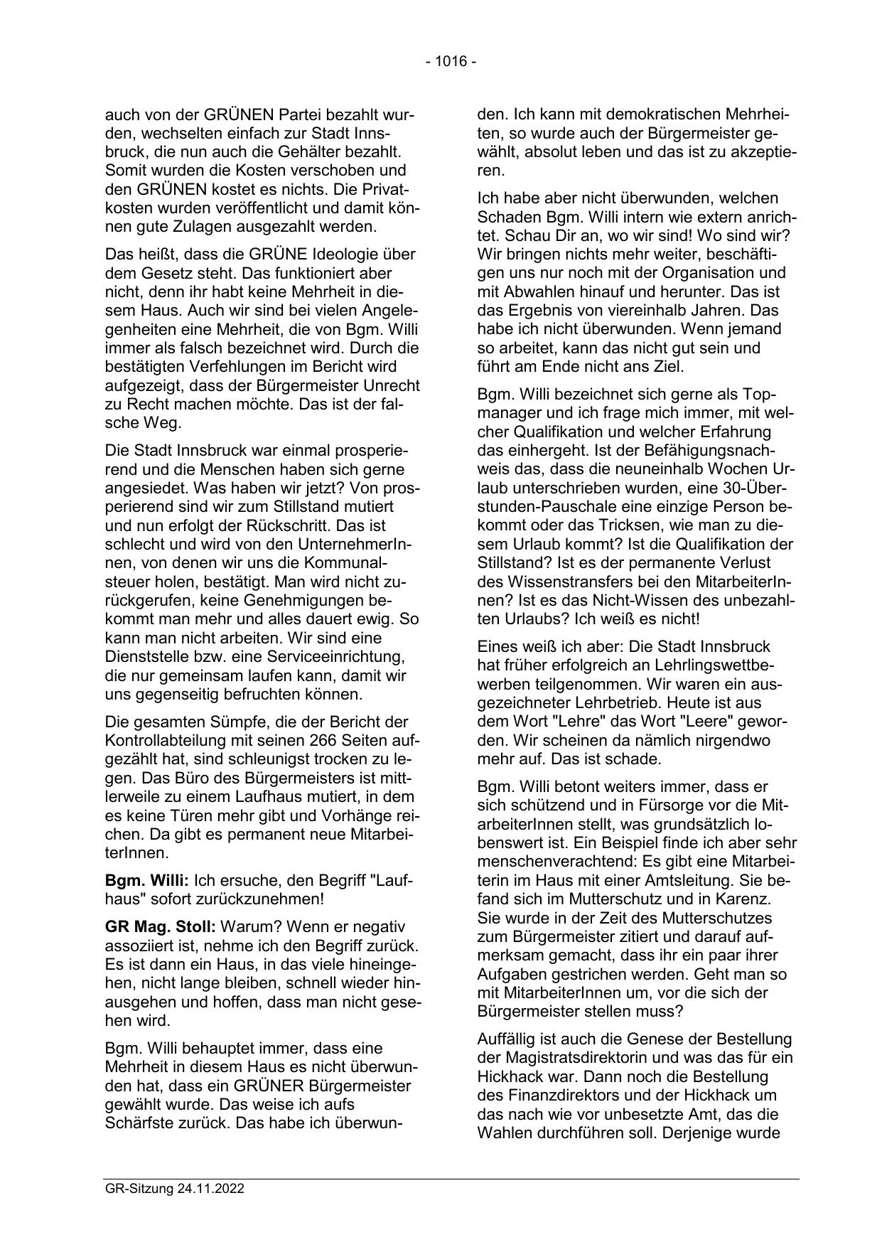 Bgm. Willi: Ich ersuche, den Begriff "Laufhaus" sofort zurückzunehmen!