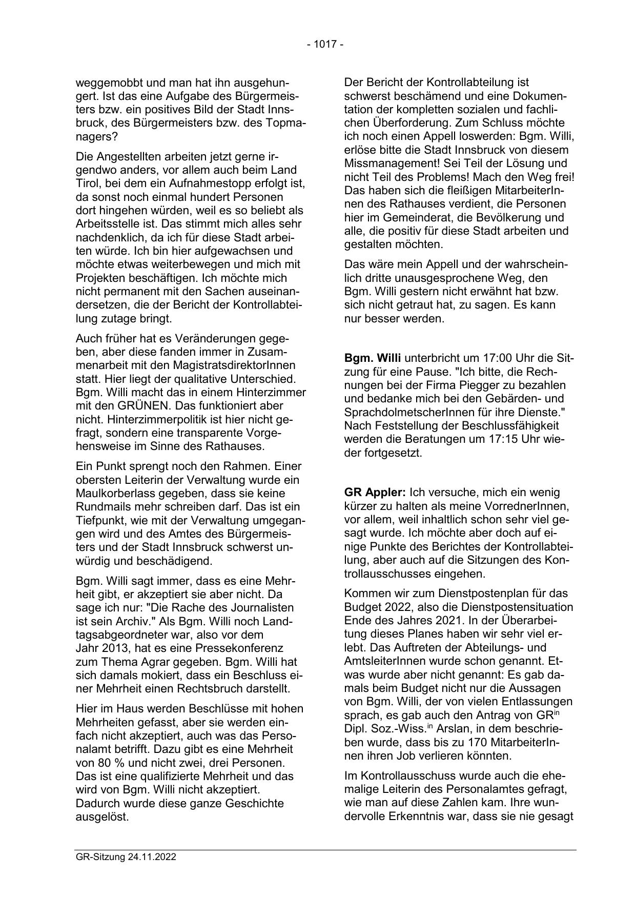 Tiefpunkt, wie mit der Verwaltung umgegangen wird und des Amtes des Bürgermeisters und der Stadt Innsbruck schwerst unwürdig und beschädigend.