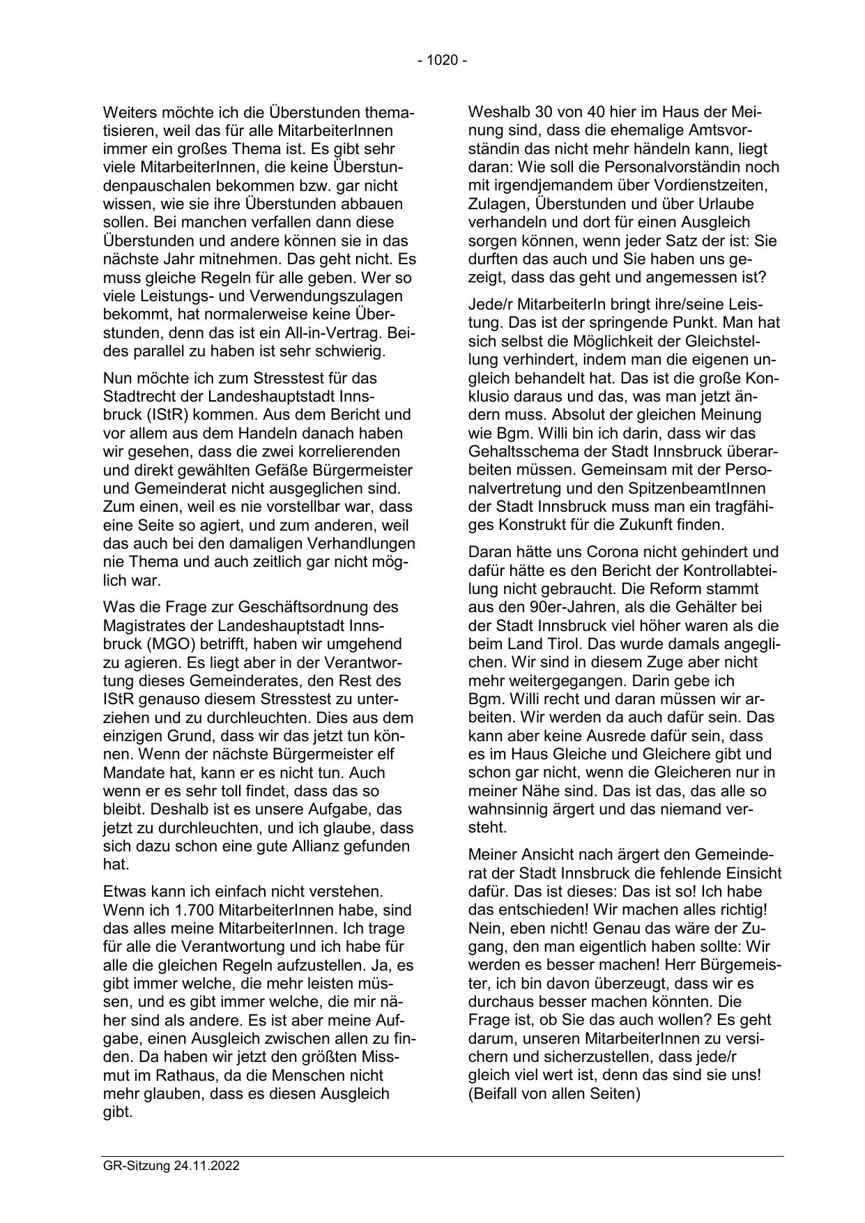 Meiner Ansicht nach ärgert den Gemeinderat der Stadt Innsbruck die fehlende Einsicht