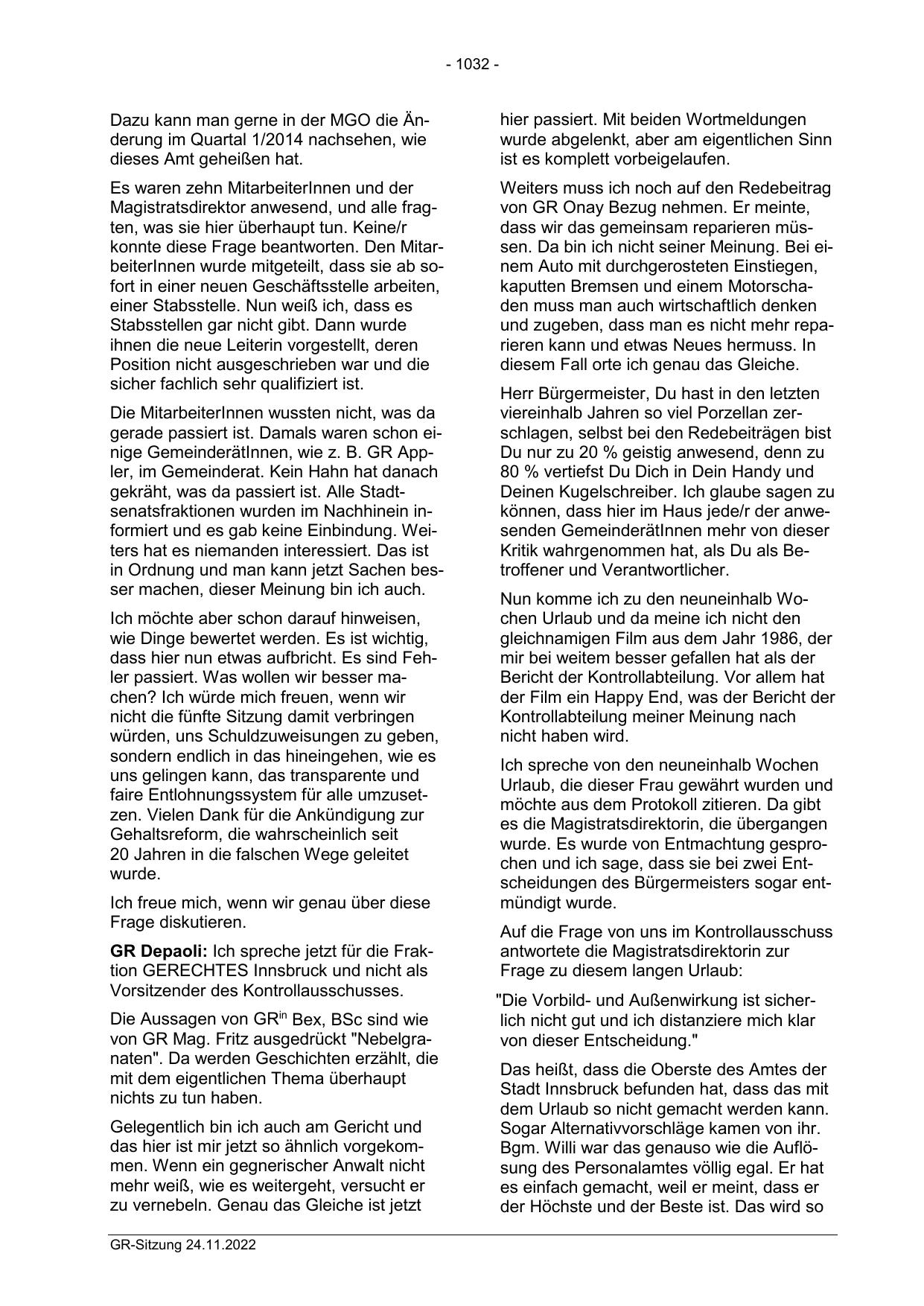 GR Depaoli: Ich spreche jetzt für die Fraktion GERECHTES Innsbruck und nicht als