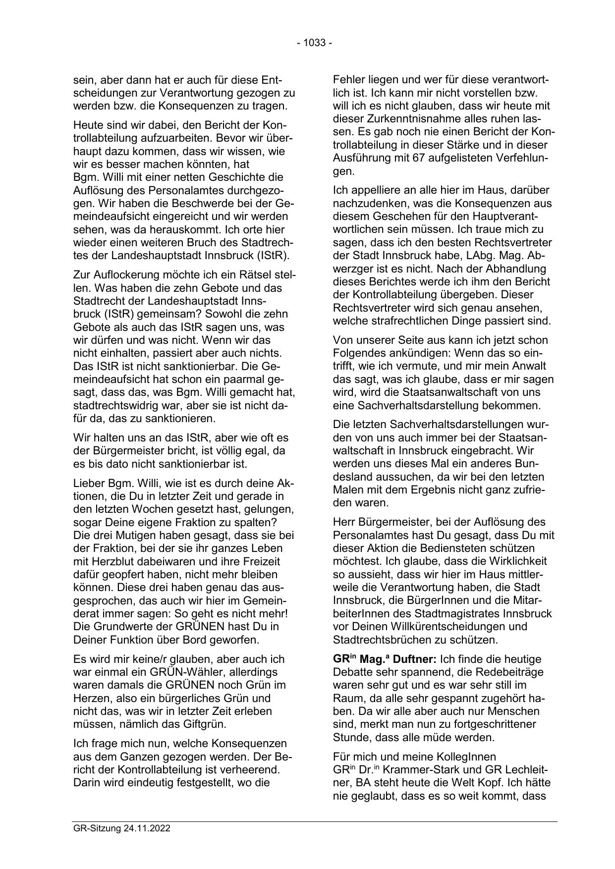 der Stadt Innsbruck habe, LAbg. Mag. Abwerzger ist es nicht. Nach der Abhandlung
