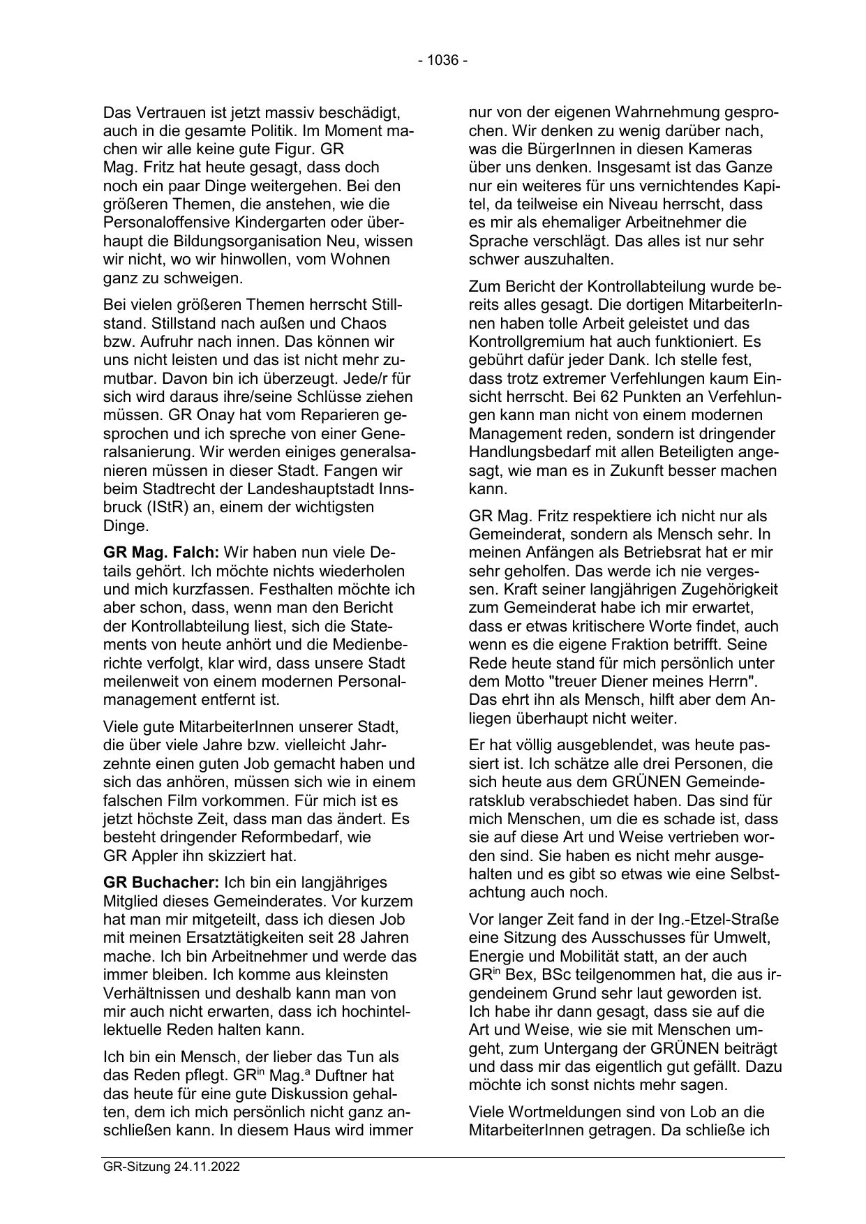 Zum Bericht der Kontrollabteilung wurde bereits alles gesagt. Die dortigen MitarbeiterInnen haben tolle Arbeit geleistet und das
