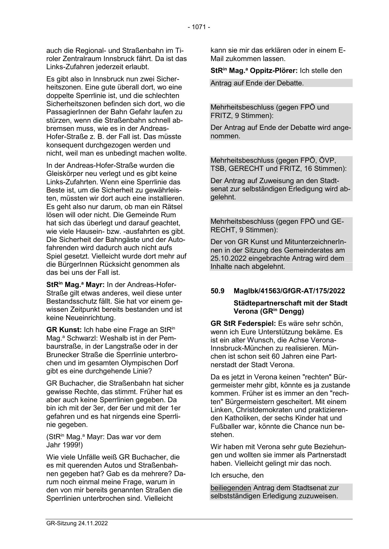 Mehrheitsbeschluss (gegen FPÖ und GERECHT, 9 Stimmen):