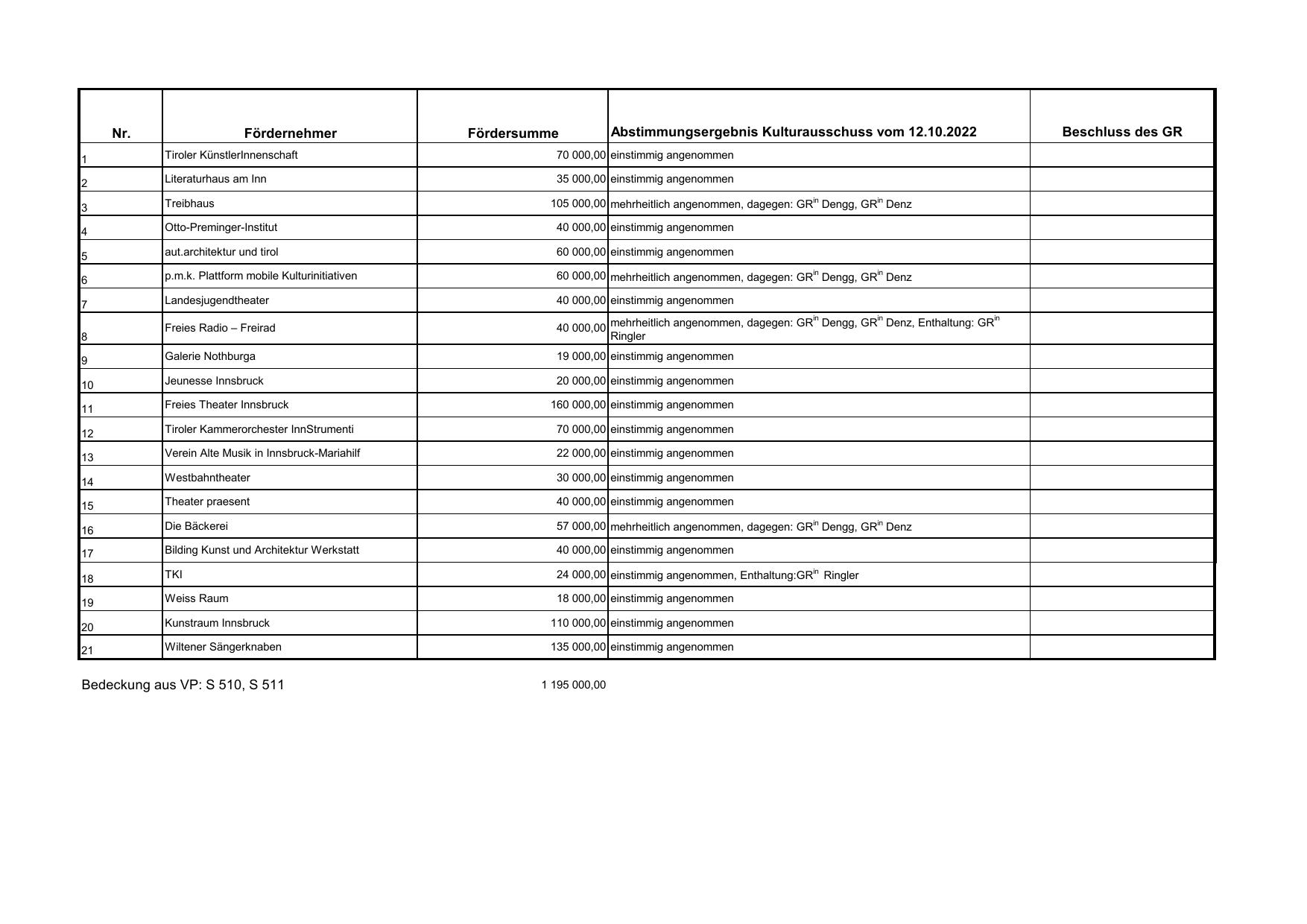 Abstimmungsergebnis Kulturausschuss vom 12.10.2022
