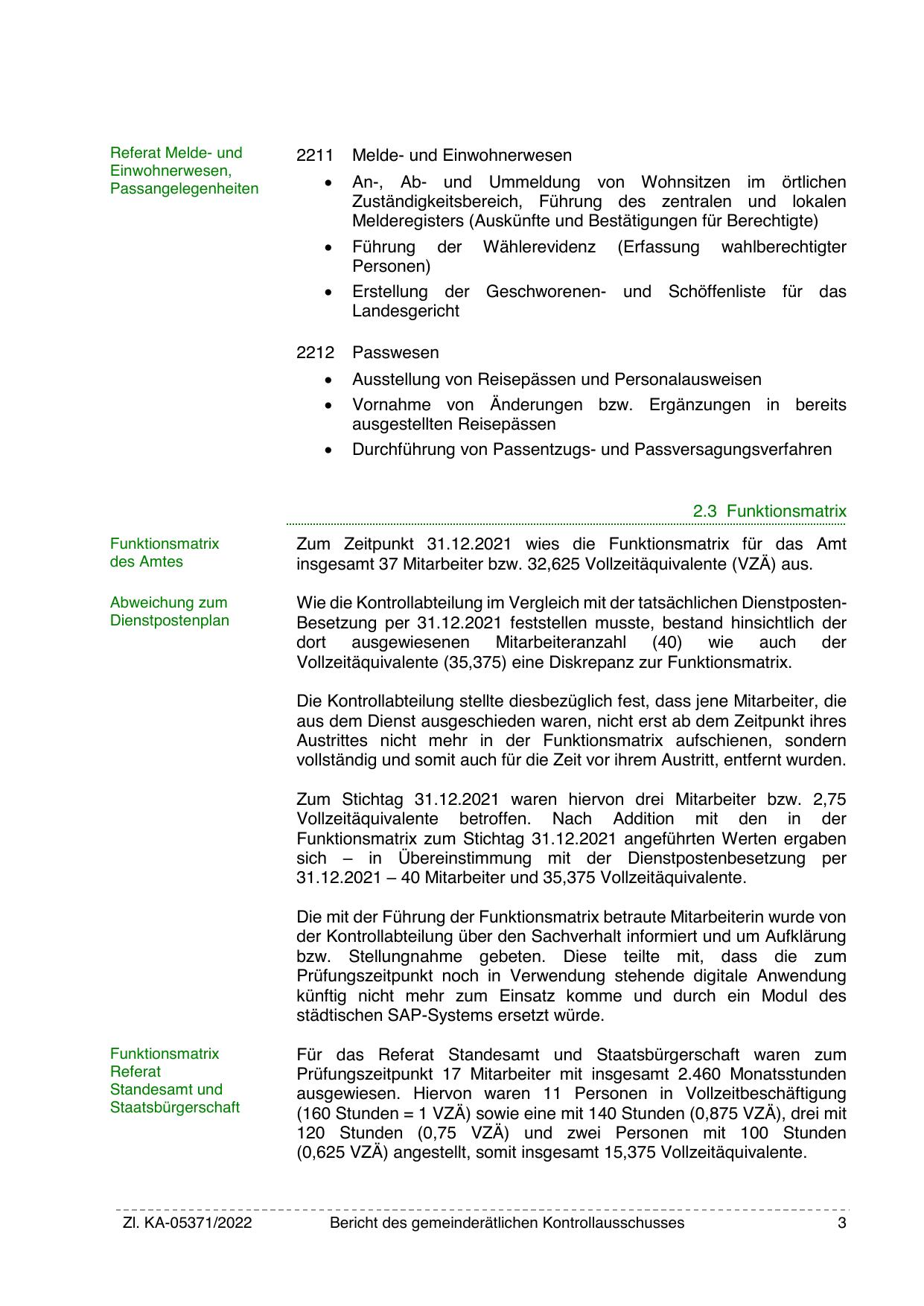 Wie die Kontrollabteilung im Vergleich mit der tatsächlichen DienstpostenBesetzung per 31.12.2021 feststellen musste, bestand hinsichtlich der