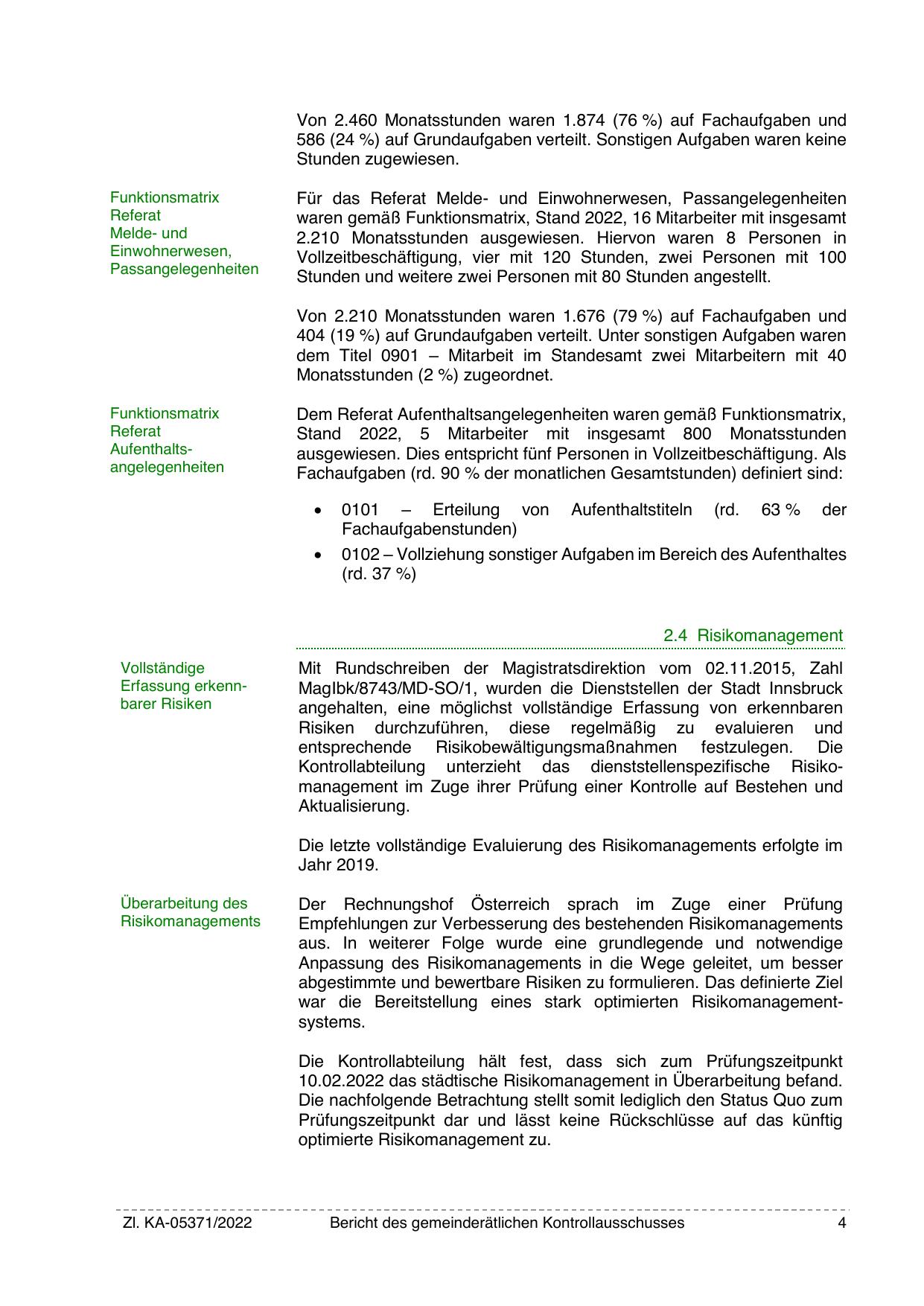 Dem Referat Aufenthaltsangelegenheiten waren gemäß Funktionsmatrix,