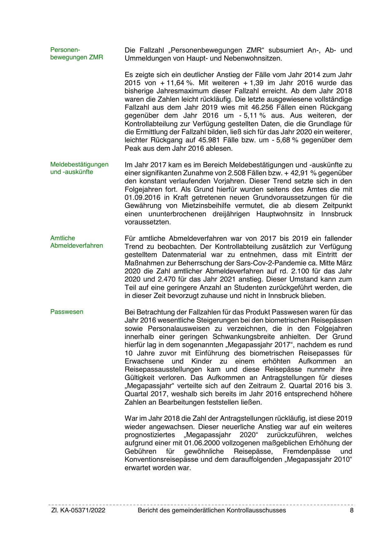 Die Fallzahl „Personenbewegungen ZMR“ subsumiert An-, Ab- und