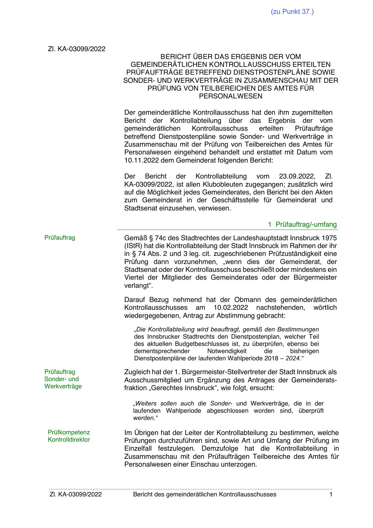 Der Bericht der Kontrollabteilung vom 23.09.2022, Zl.