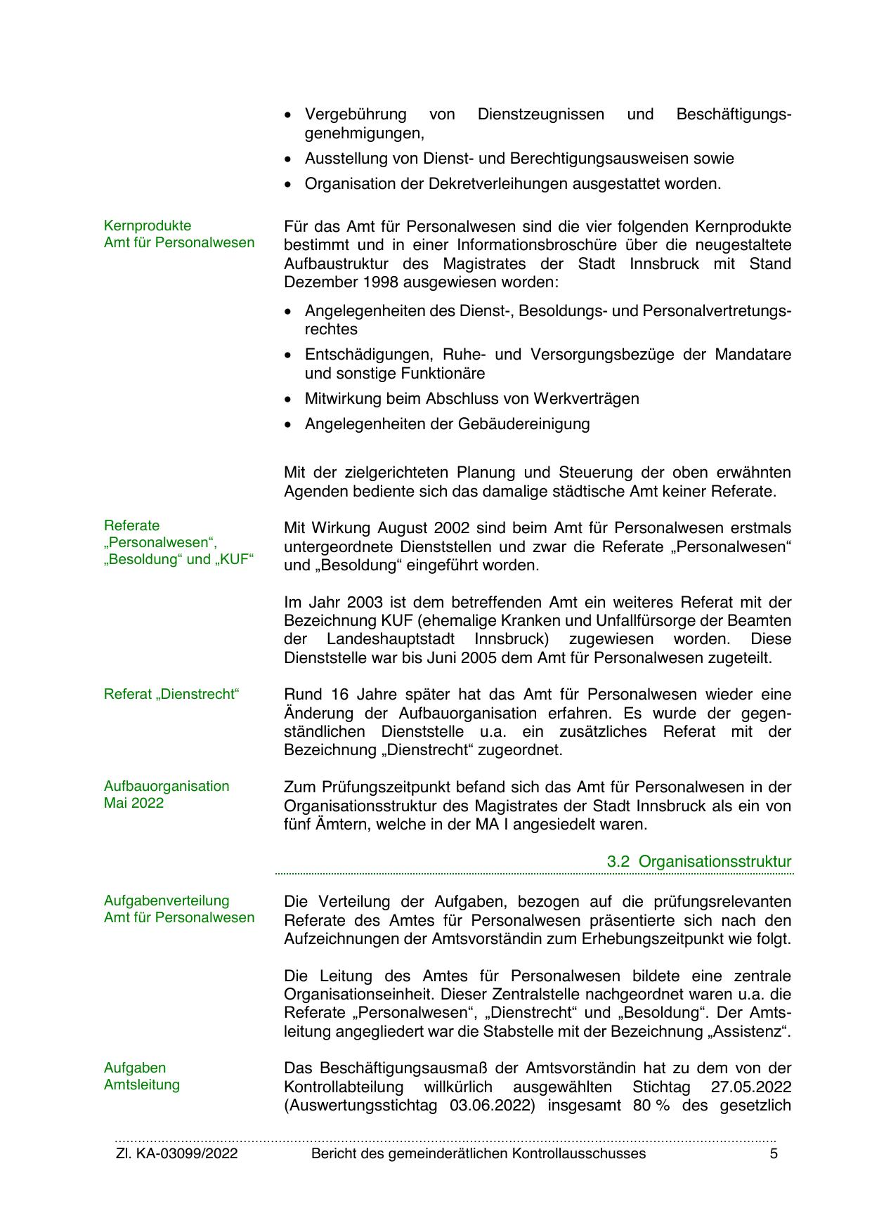Referate „Personalwesen“, „Dienstrecht“ und „Besoldung“. Der Amtsleitung angegliedert war die Stabstelle mit der Bezeichnung „Assistenz“.