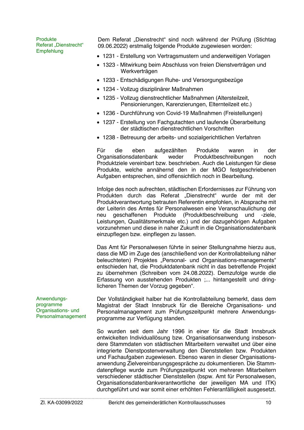 Produkten durch das Referat „Dienstrecht“ wurde der mit der