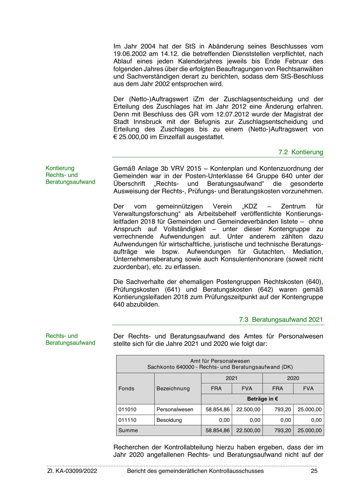 Der Rechts- und Beratungsaufwand des Amtes für Personalwesen