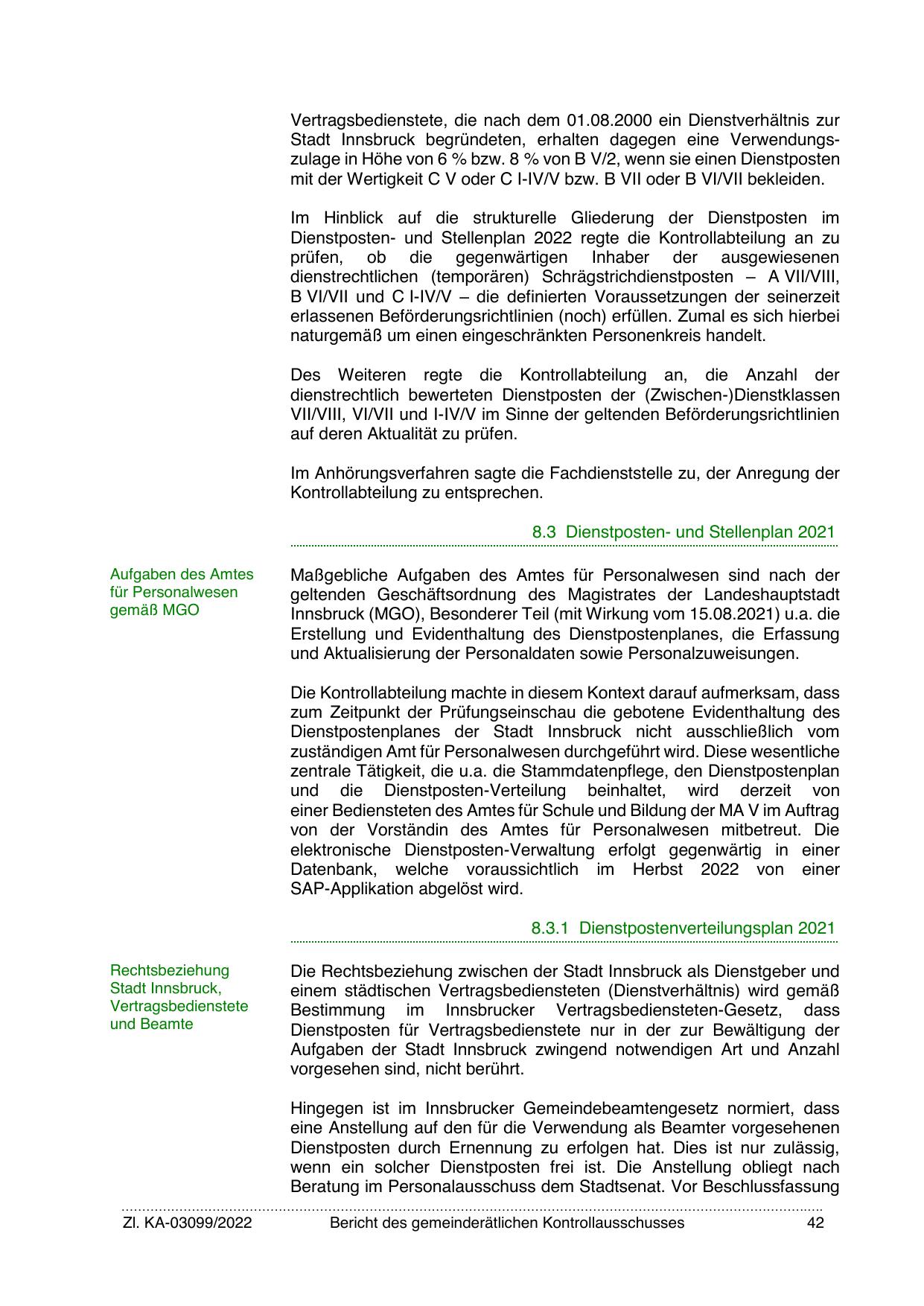 Dienstpostenplanes der Stadt Innsbruck nicht ausschließlich vom