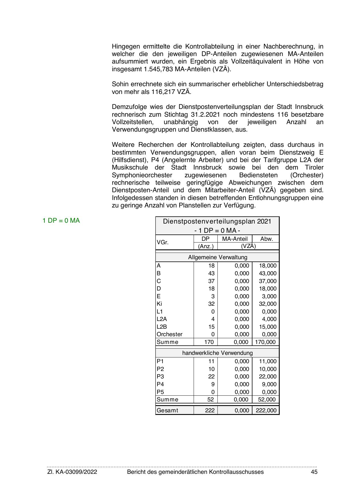 Demzufolge wies der Dienstpostenverteilungsplan der Stadt Innsbruck