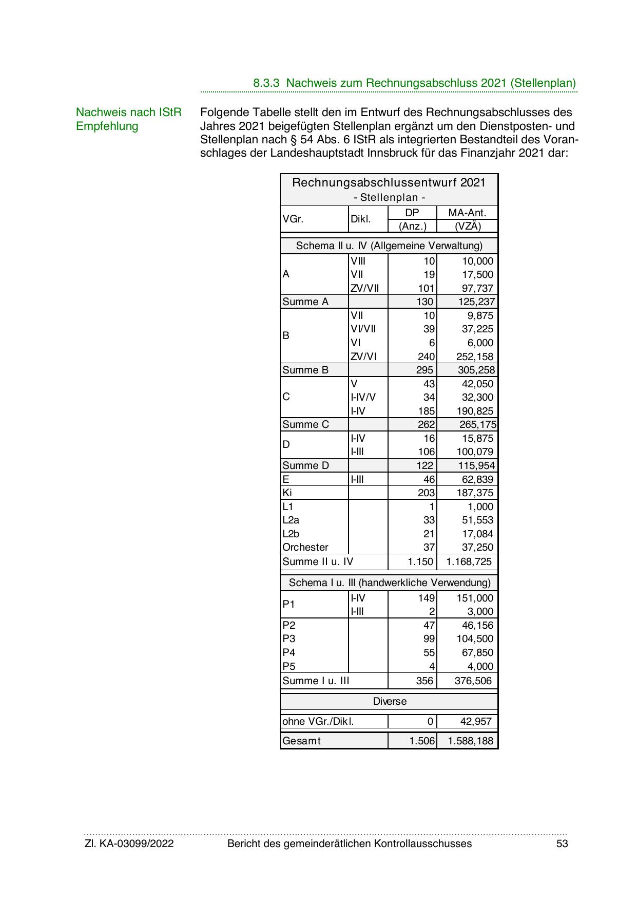 8.3.3 Nachweis zum Rechnungsabschluss 2021 (Stellenplan)