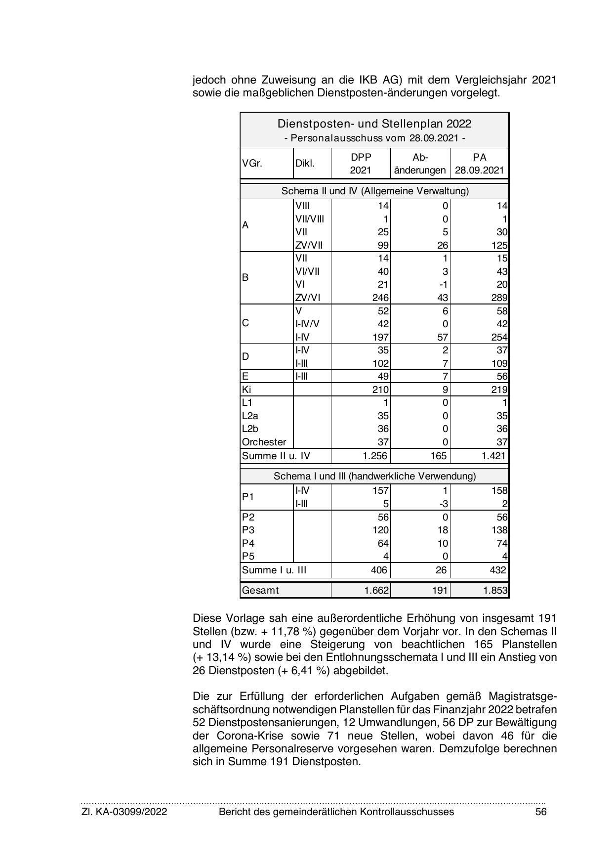 Die zur Erfüllung der erforderlichen Aufgaben gemäß Magistratsgeschäftsordnung notwendigen Planstellen für das Finanzjahr 2022 betrafen