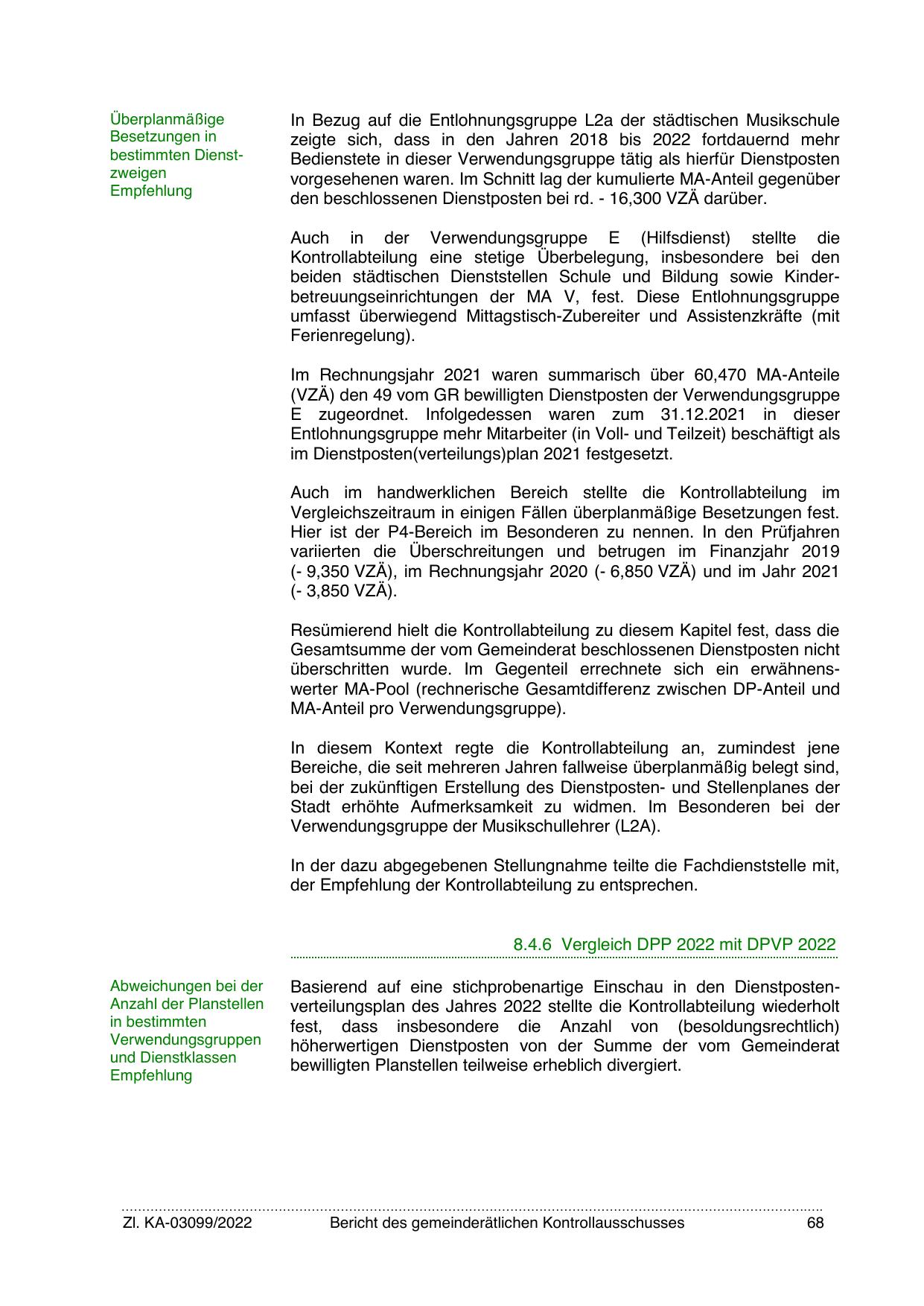 (VZÄ) den 49 vom GR bewilligten Dienstposten der Verwendungsgruppe