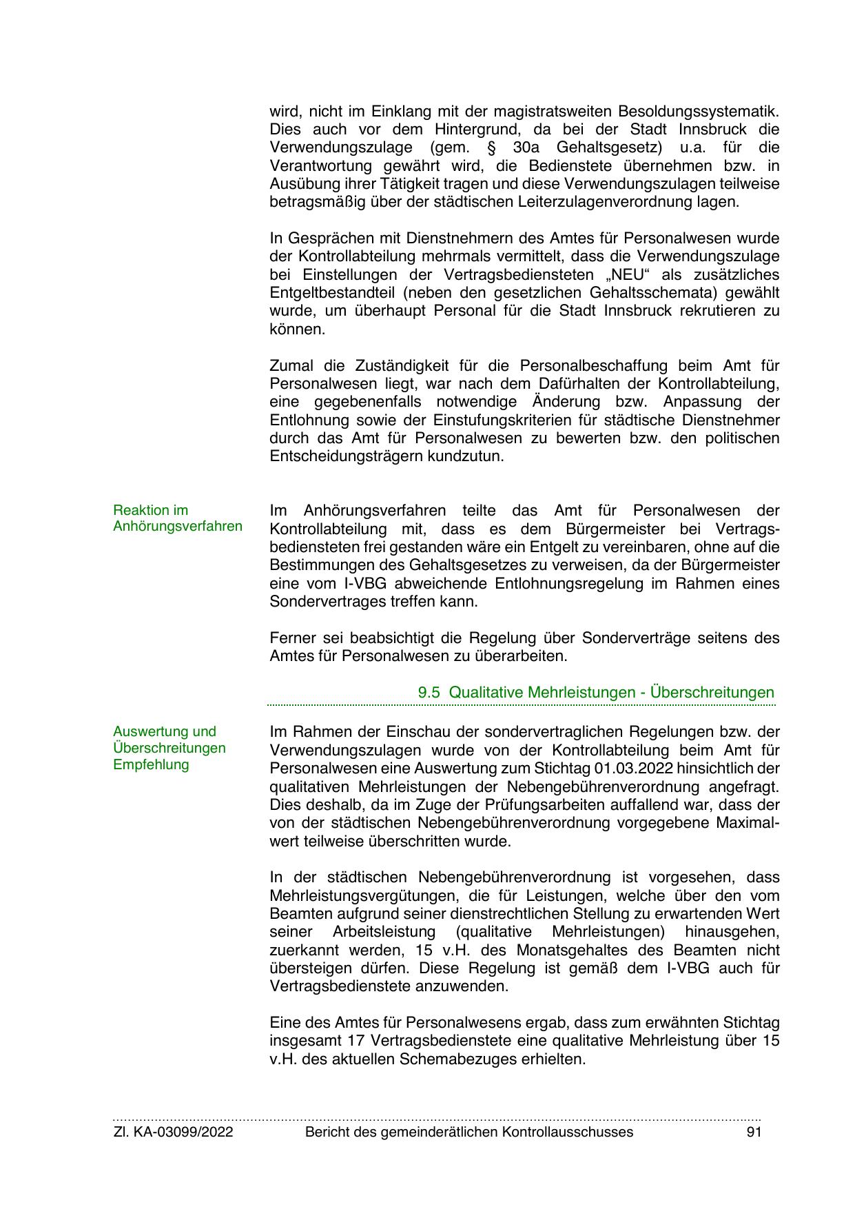 Kontrollabteilung mit, dass es dem Bürgermeister bei Vertragsbediensteten frei gestanden wäre ein Entgelt zu vereinbaren, ohne auf die
