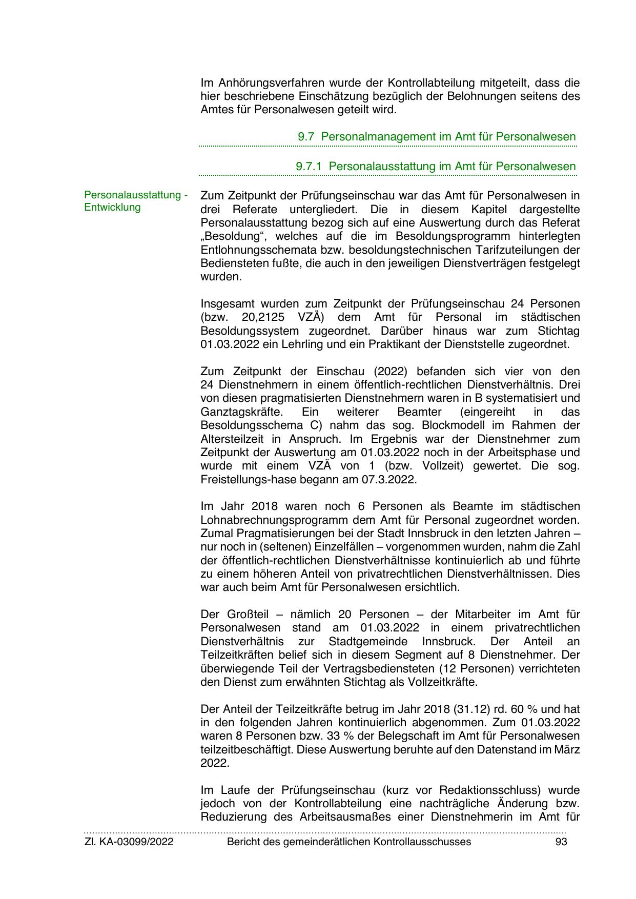 Zum Zeitpunkt der Prüfungseinschau war das Amt für Personalwesen in