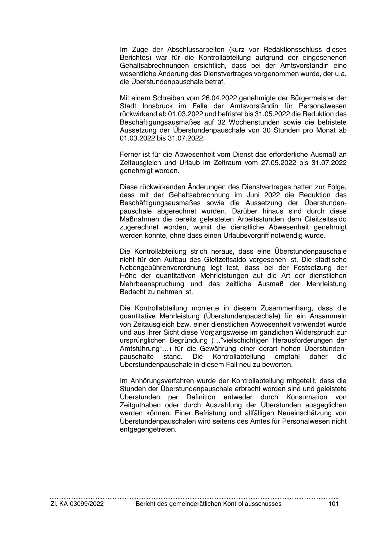 Amtsführung“…) für die Gewährung einer derart hohen Überstundenpauschalte stand. Die Kontrollabteilung empfahl daher die