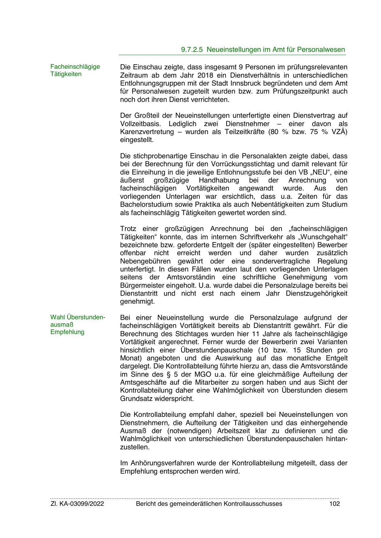 Entlohnungsgruppen mit der Stadt Innsbruck begründeten und dem Amt