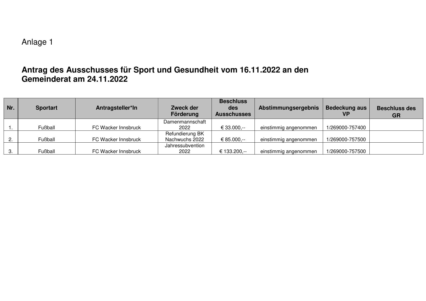 Antrag des Ausschusses für Sport und Gesundheit vom 16.11.2022 an den