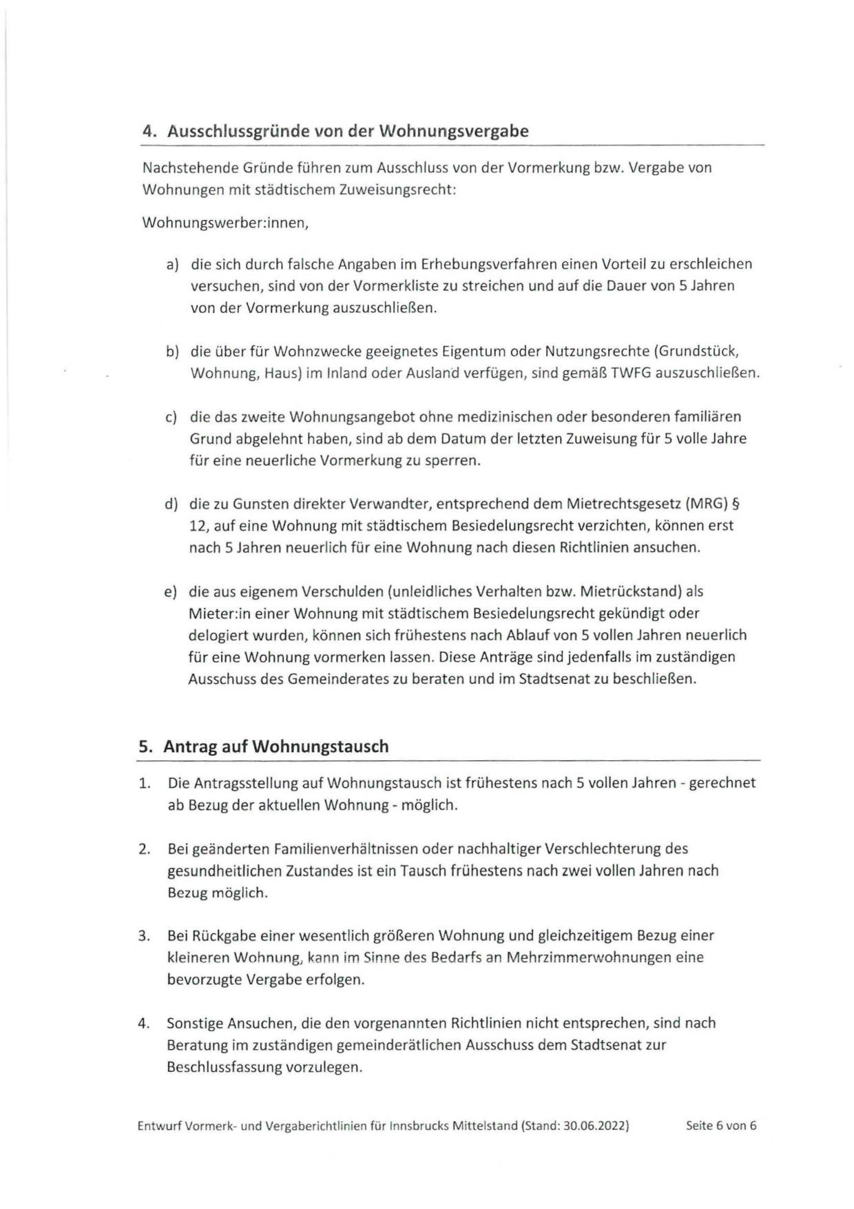 4. Aussch lussgrün de von der Wohnungsvergabe