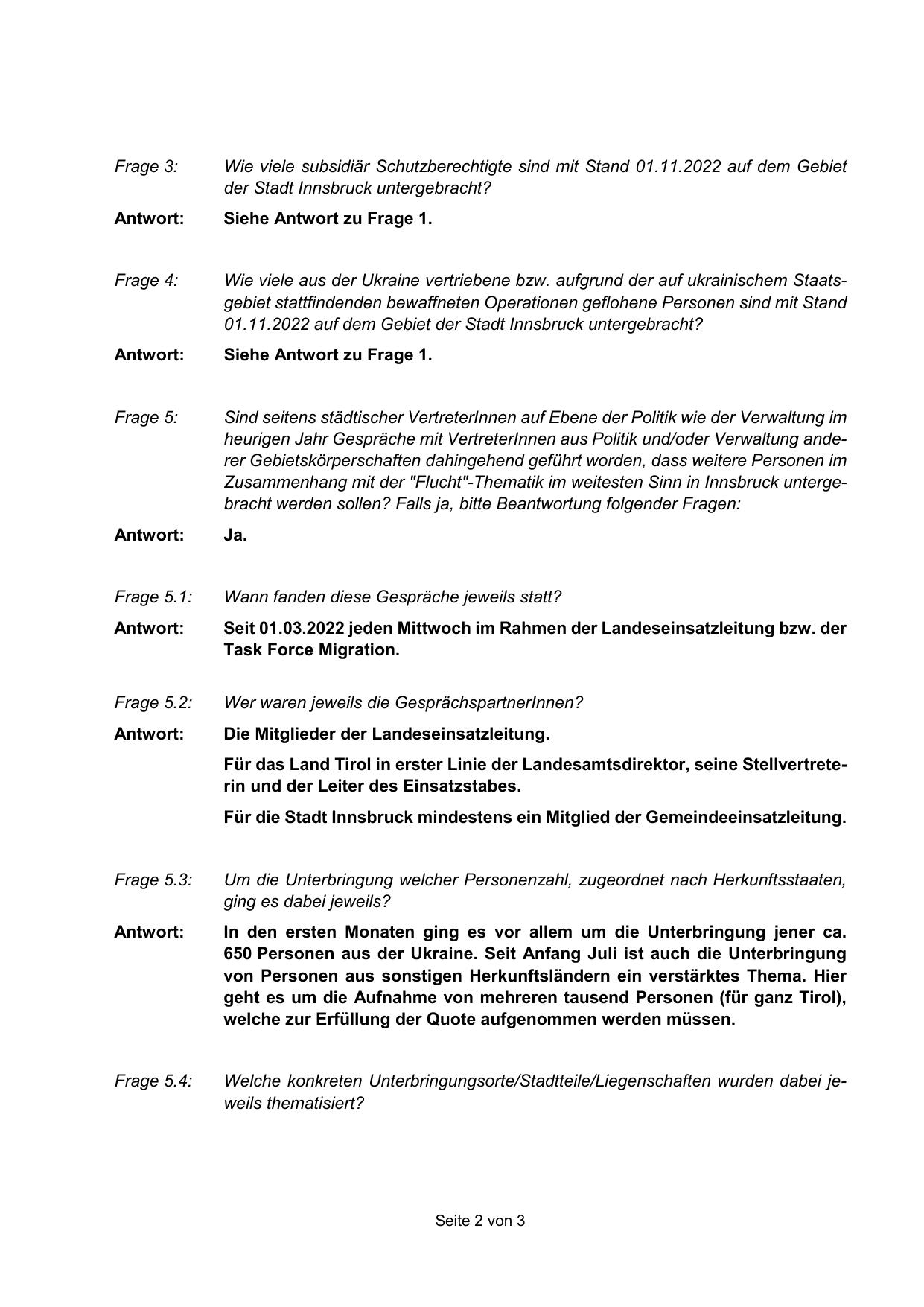 01.11.2022 auf dem Gebiet der Stadt Innsbruck untergebracht?