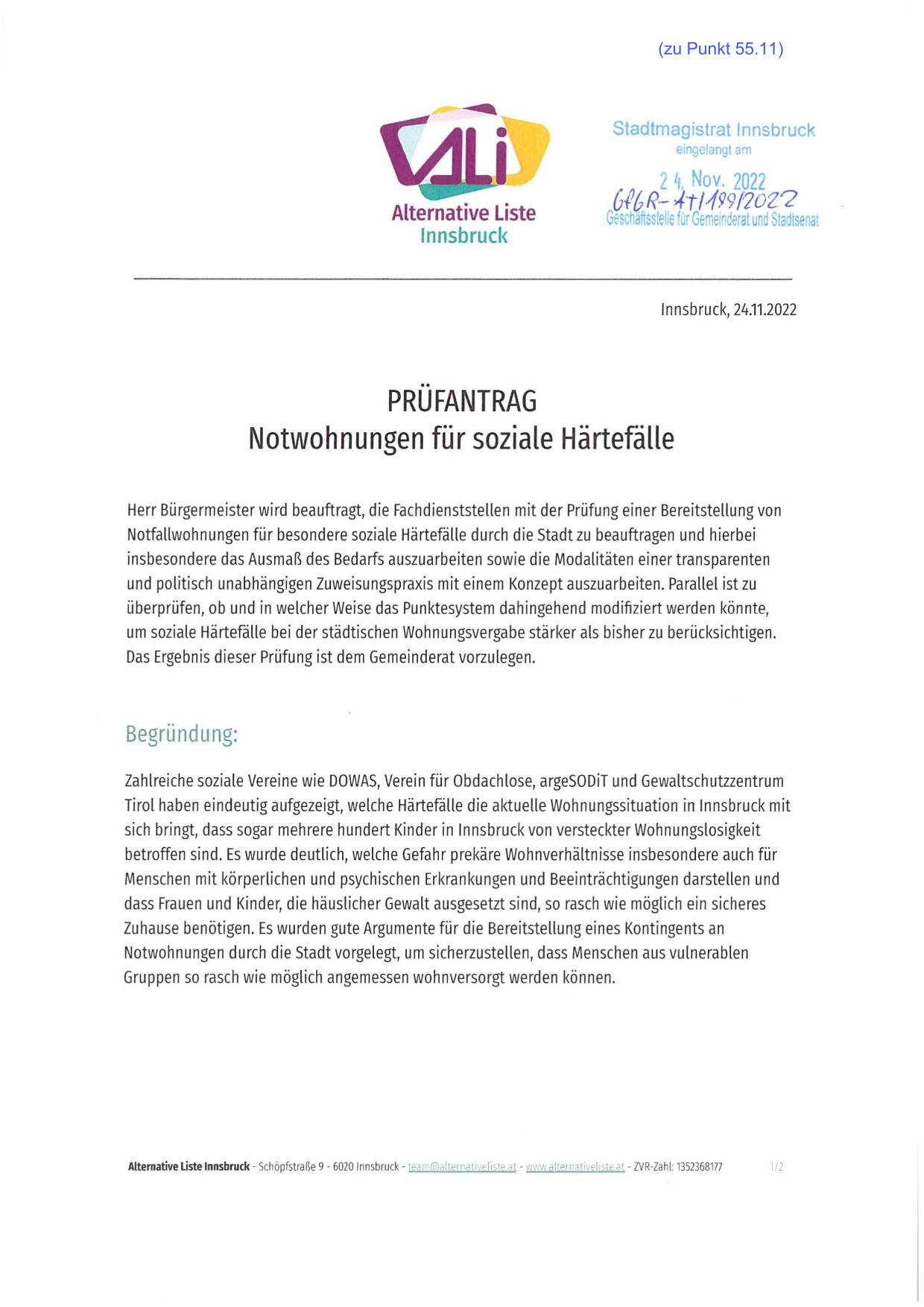 um soziale Härtefälle bei der städtischen Wohnungsvergabe stärker als bisher zu berücksichtigen.