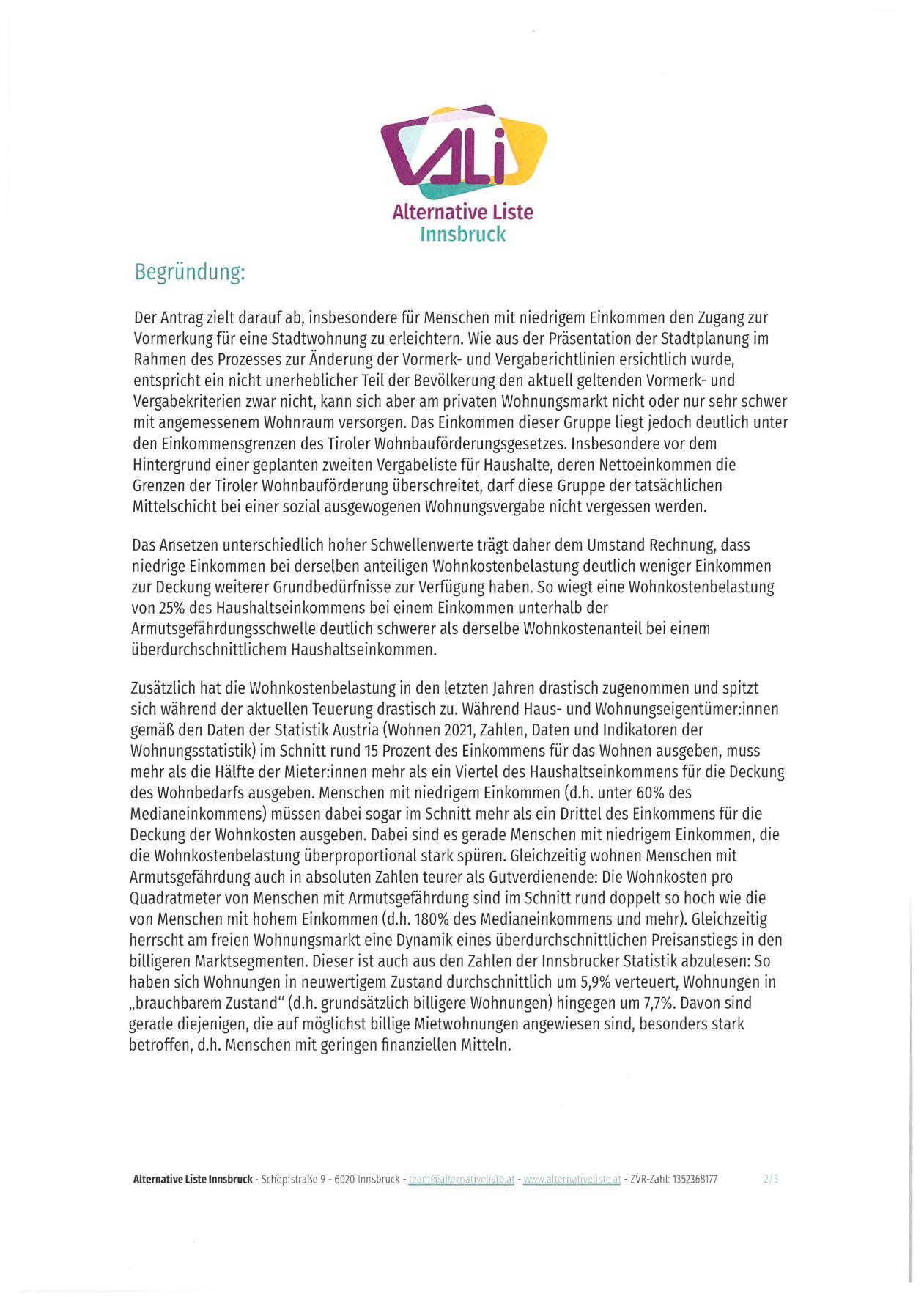 Alternative Liste Innsbruck - Schöpfstraße 9 - 6020 Innsbruck - team®alternat1vel1ste.at - w:1 v alternat1,eliste at - ZVR-Zahl: 1352368177