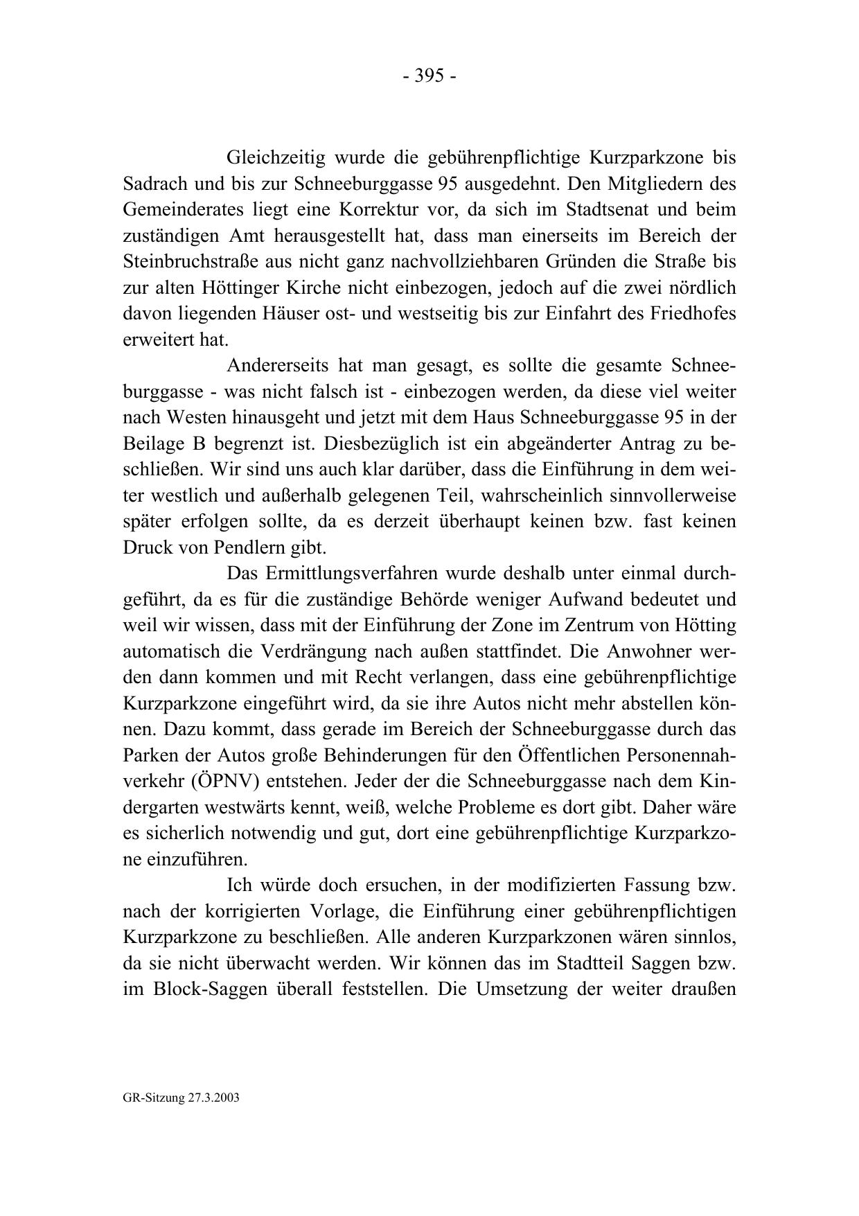 Kurzparkzone zu beschließen. Alle anderen Kurzparkzonen wären sinnlos,