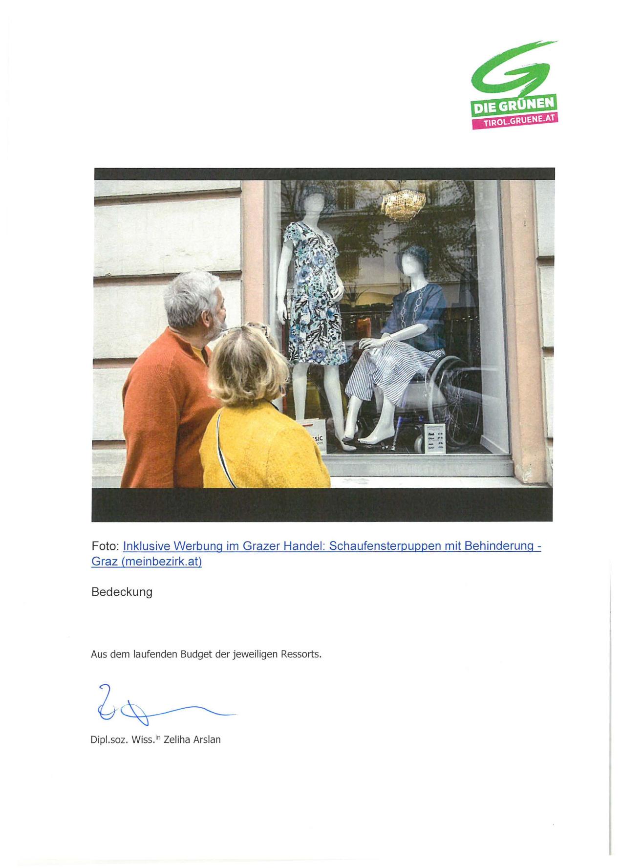 Foto: Inklusive Werbung im Grazer Handel : Schaufensterpuppen mit Behinderung Graz (meinbezirk .at)