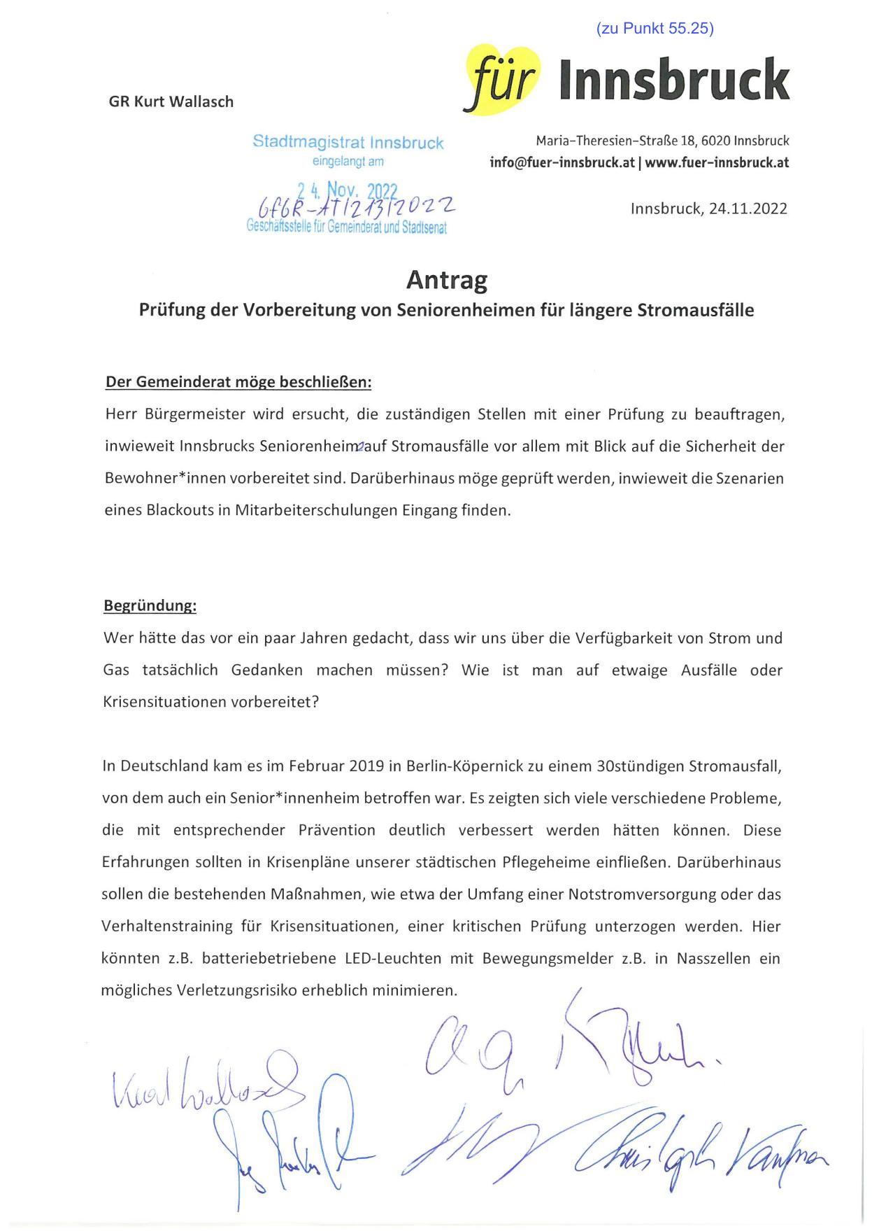 inwieweit lnnsbrucks Seniorenhei m:2auf Stromausfälle vor allem mit Blick auf die Sicherheit der