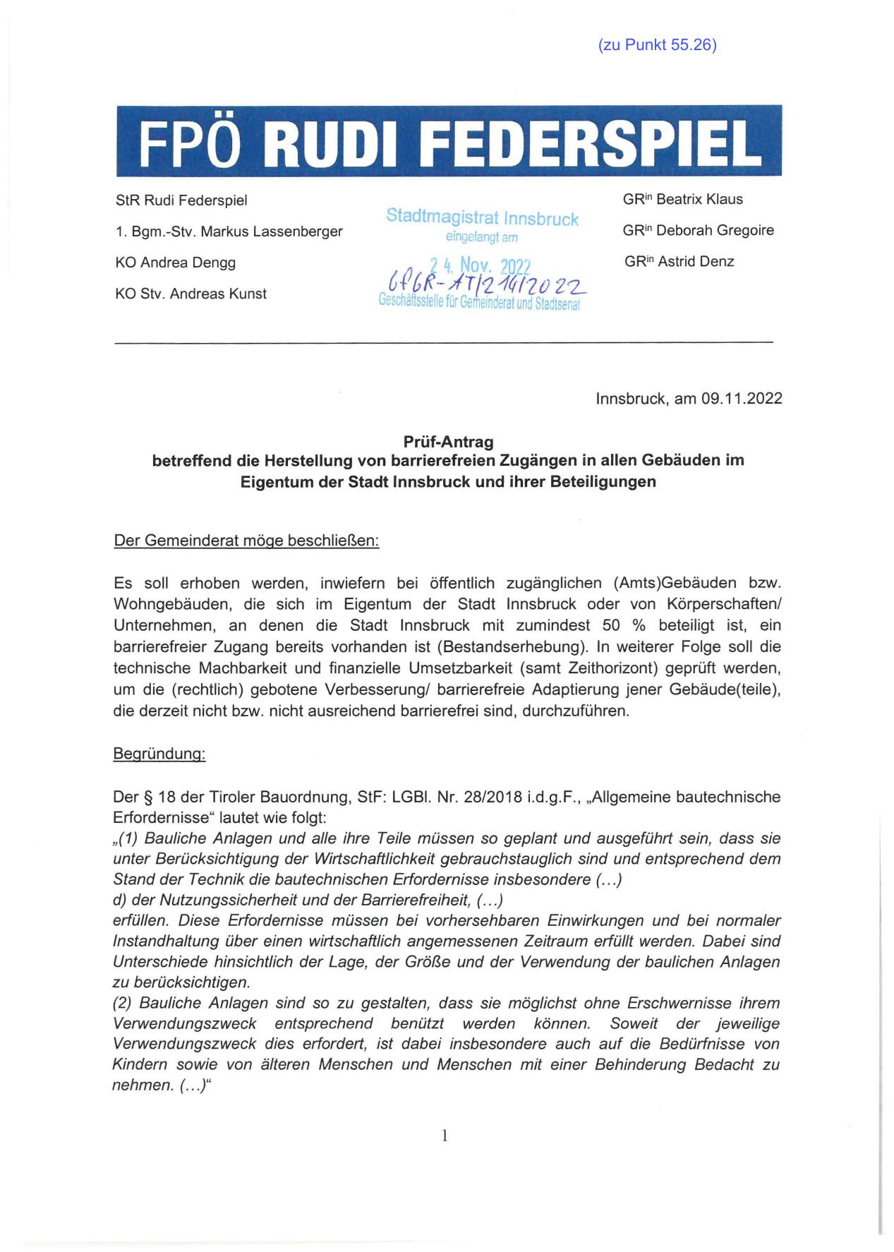 betreffend die Herstellung von barrierefreien Zugängen in allen Gebäuden im